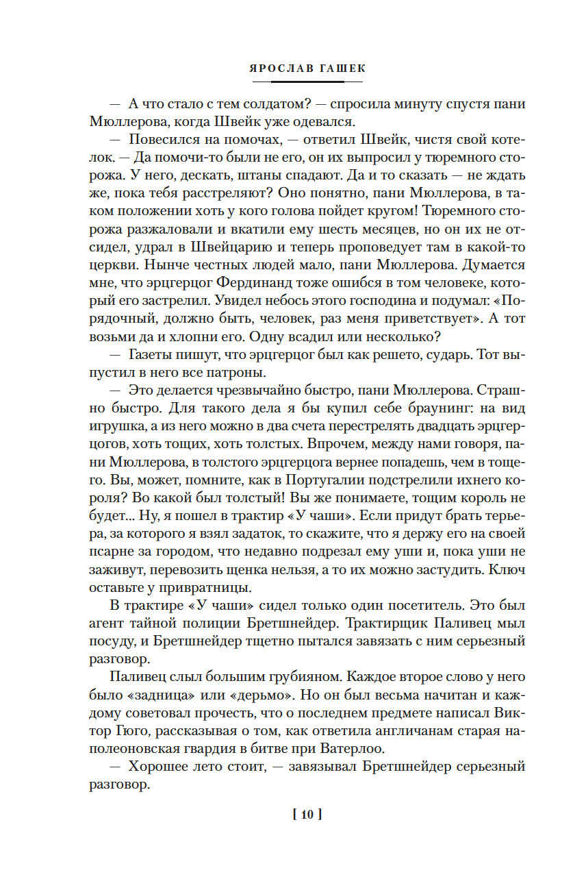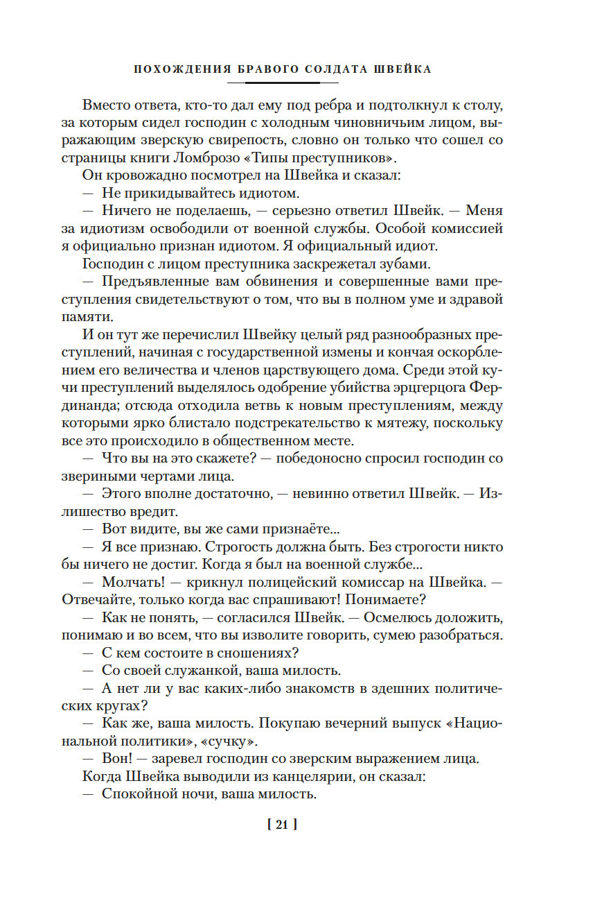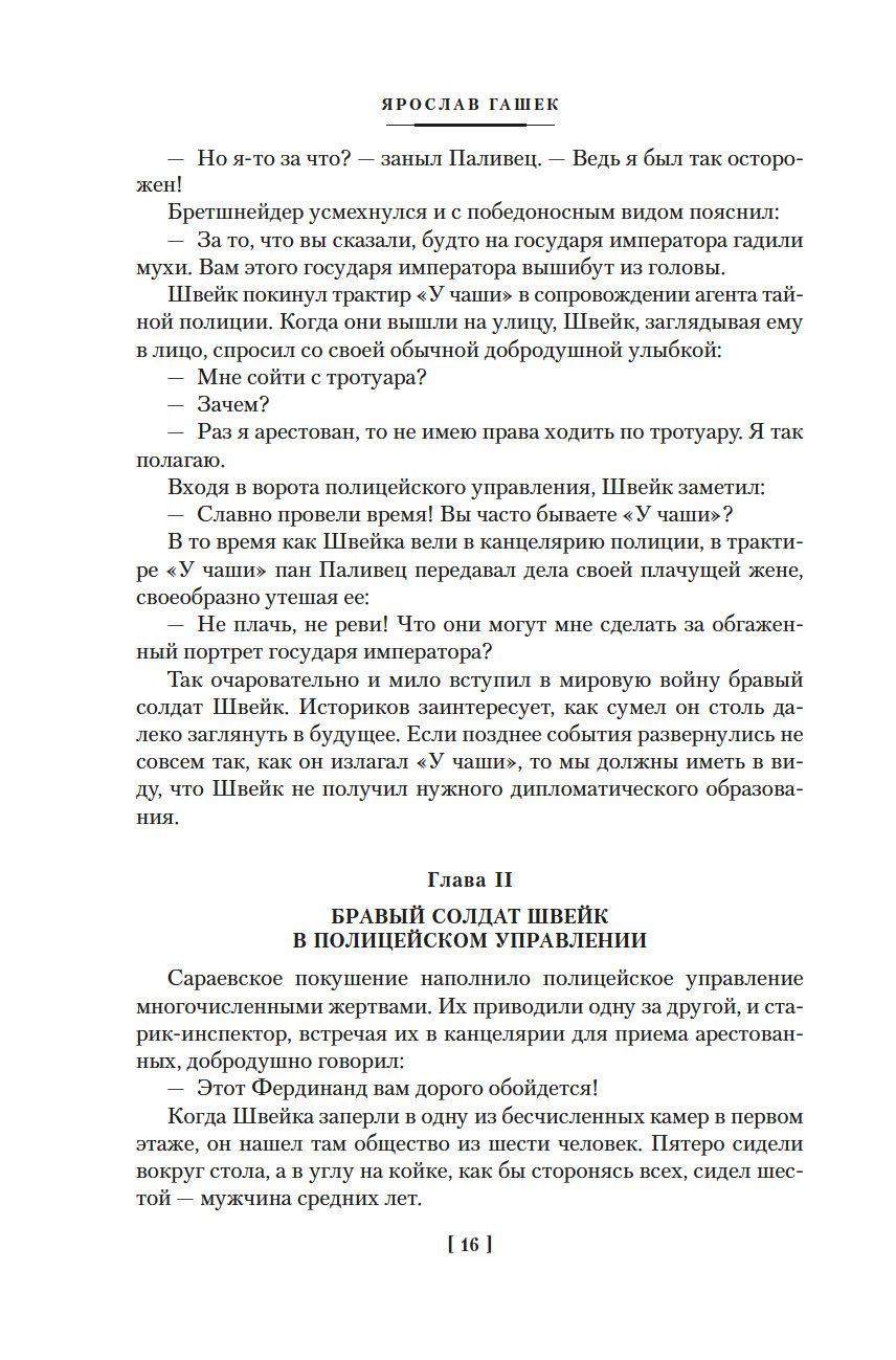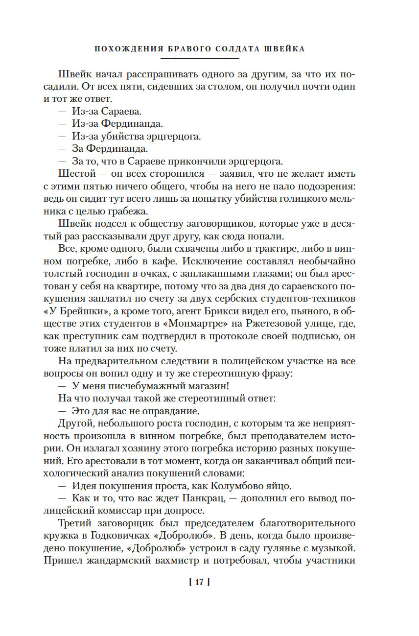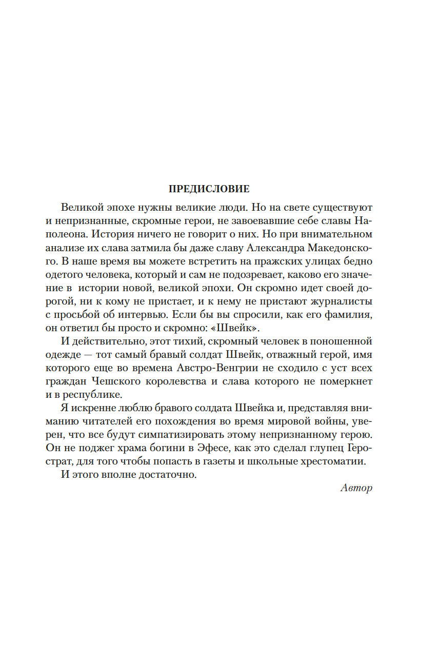 Ярослав Гашек (1883-1923) – писатель огромного таланта, беспокойного нрава, непростой судьбы, озорник и авантюрист. Написанные им "Похождения бравого солдата Швейка" – самое популярное произведение чешской литературы, переведенное едва ли не на все языки мира. Великий, оригинальный и хулиганский роман. Книга, которую можно воспринимать и как "солдатскую байку", и как классическое произведение, непосредственно связанное с традициями Возрождения. Это текст, над которым смеешься до слез, это мощный призыв "сложить оружие", и к тому же – одно из самых объективных исторических свидетельств в сатирической литературе. Недаром нацисты внесли "Похождения бравого солдата Швейка" в список книг, подлежащих сожжению.