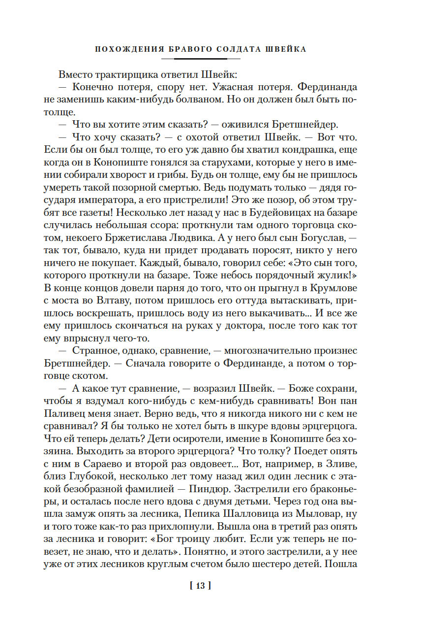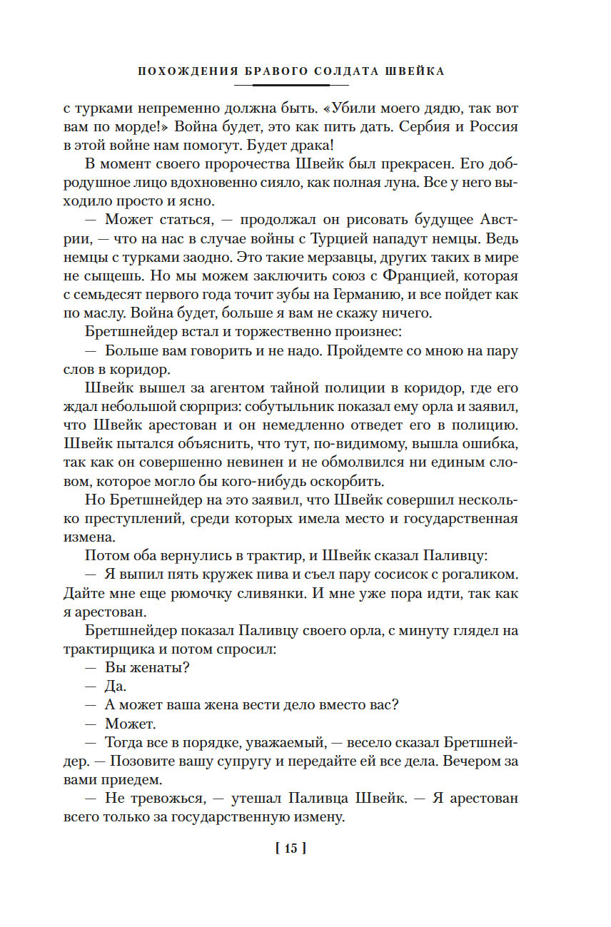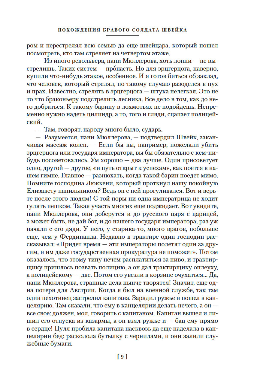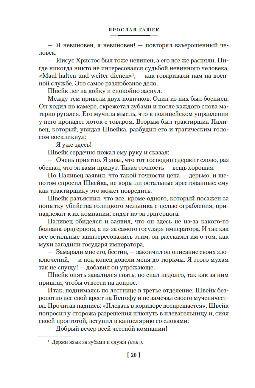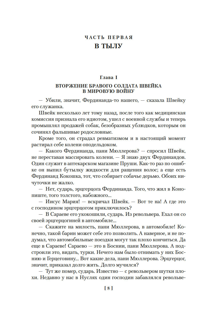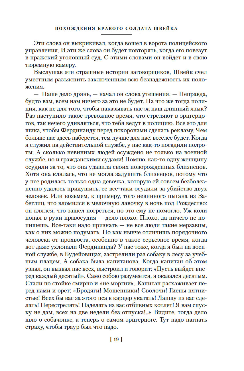 Ярослав Гашек (1883-1923) – писатель огромного таланта, беспокойного нрава, непростой судьбы, озорник и авантюрист. Написанные им "Похождения бравого солдата Швейка" – самое популярное произведение чешской литературы, переведенное едва ли не на все языки мира. Великий, оригинальный и хулиганский роман. Книга, которую можно воспринимать и как "солдатскую байку", и как классическое произведение, непосредственно связанное с традициями Возрождения. Это текст, над которым смеешься до слез, это мощный призыв "сложить оружие", и к тому же – одно из самых объективных исторических свидетельств в сатирической литературе. Недаром нацисты внесли "Похождения бравого солдата Швейка" в список книг, подлежащих сожжению.