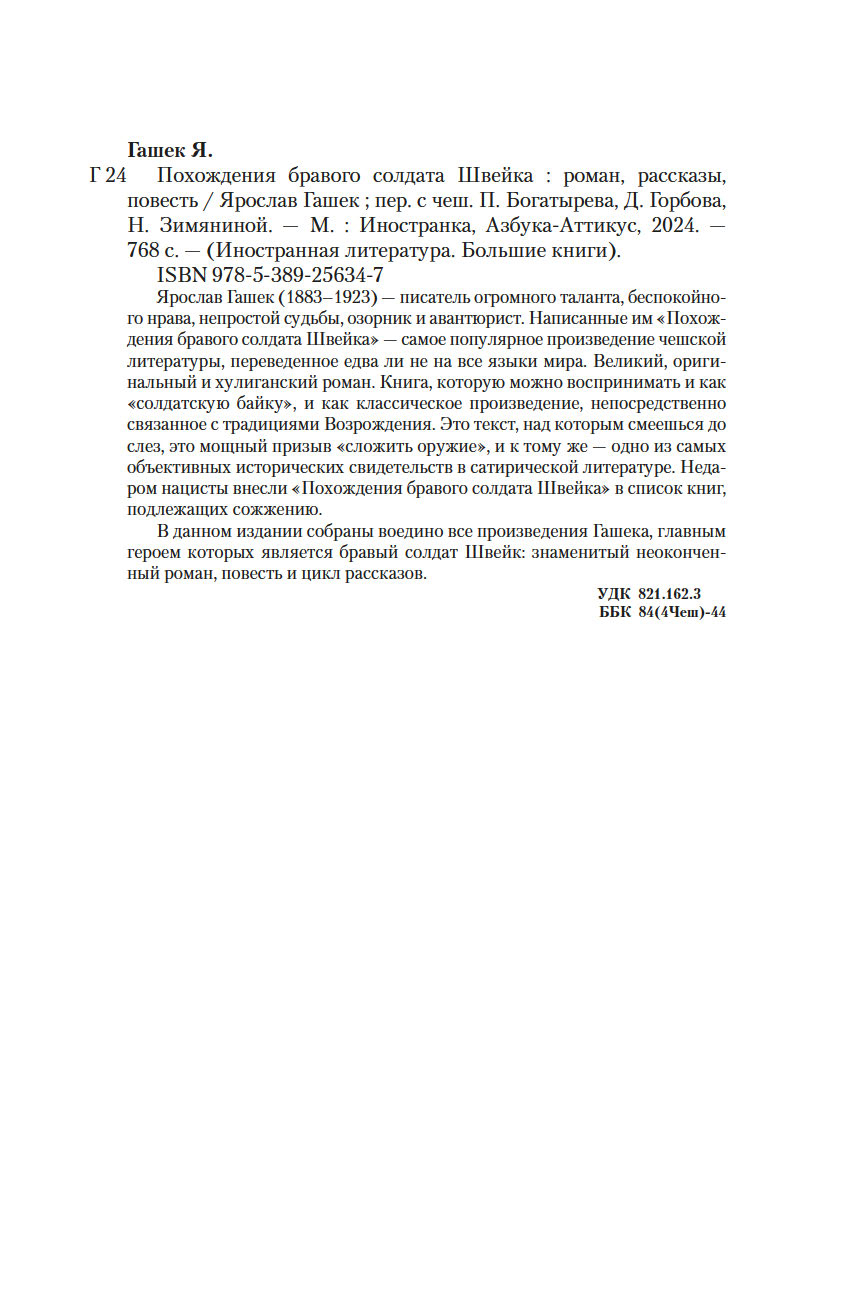 В данном издании собраны воедино все произведения Гашека, главным героем которых является бравый солдат Швейк: знаменитый неоконченный роман, повесть и цикл рассказов.