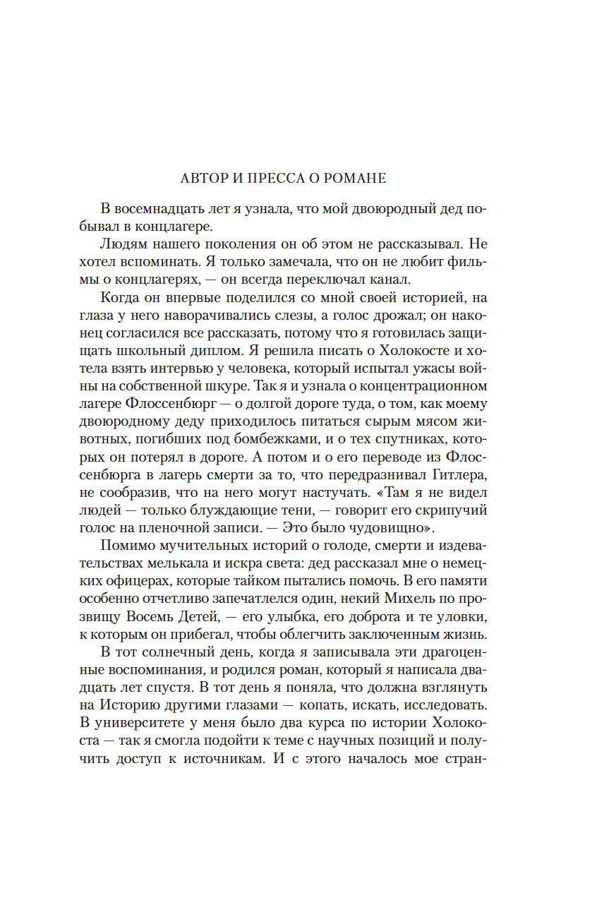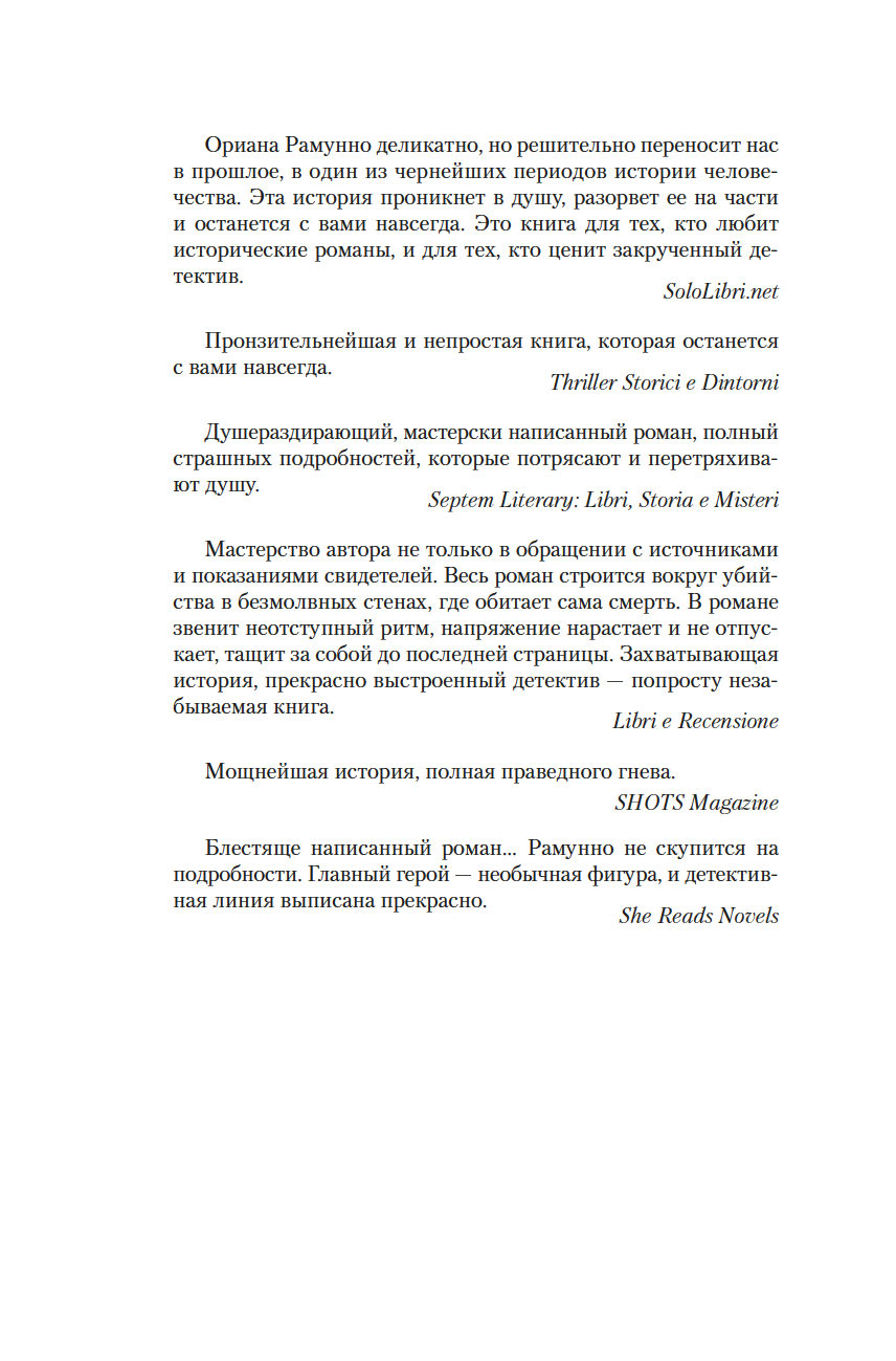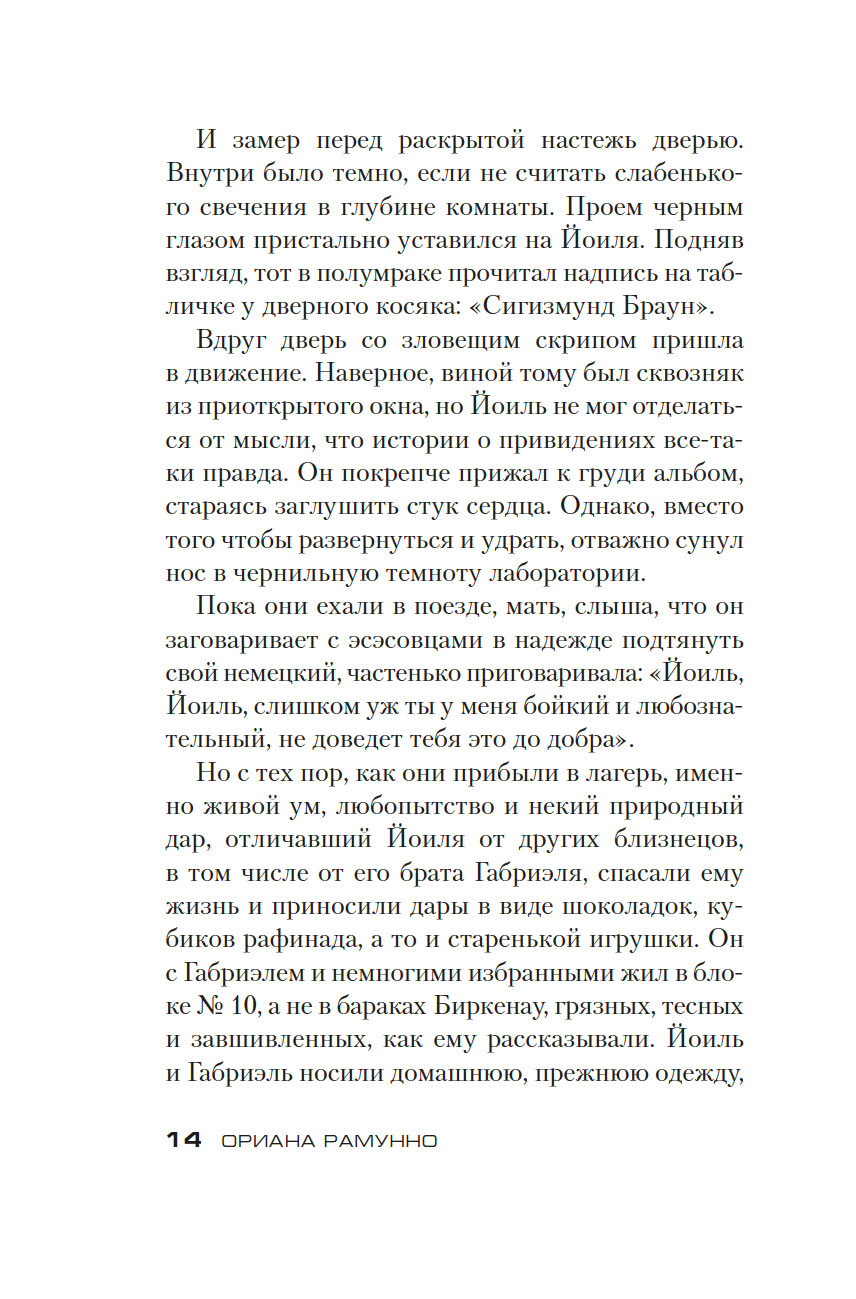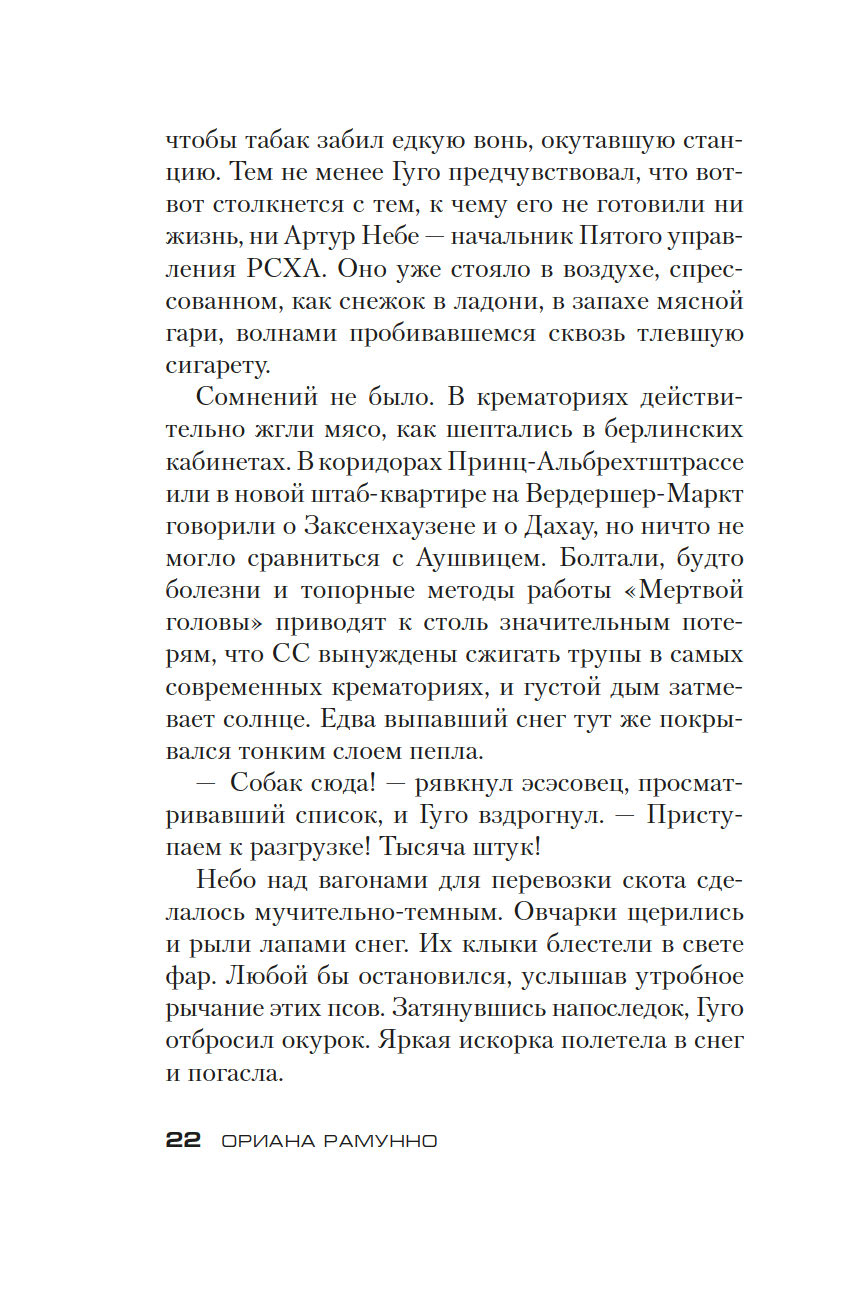 Ориана Рамунно написала детективный триллер на материале своих исследований Холокоста – невероятный, однако блестяще удавшийся ход. "Мальчик, который рисовал тени" – это "Мальчик в полосатой пижаме", если бы его написал Жан-Кристоф Гранже: напряженная детективная интрига, достоверный исторический фон, банальность зла и возможность противиться ему в тех краях, откуда давным-давно ушла надежда. Рамунно черпала материал в том числе из биографии своего двоюродного деда, побывавшего в лагере смерти и запомнившего, что даже в этом аду, даже среди надзирателей находились люди, которым хватало духу оставаться людьми и сопротивляться.