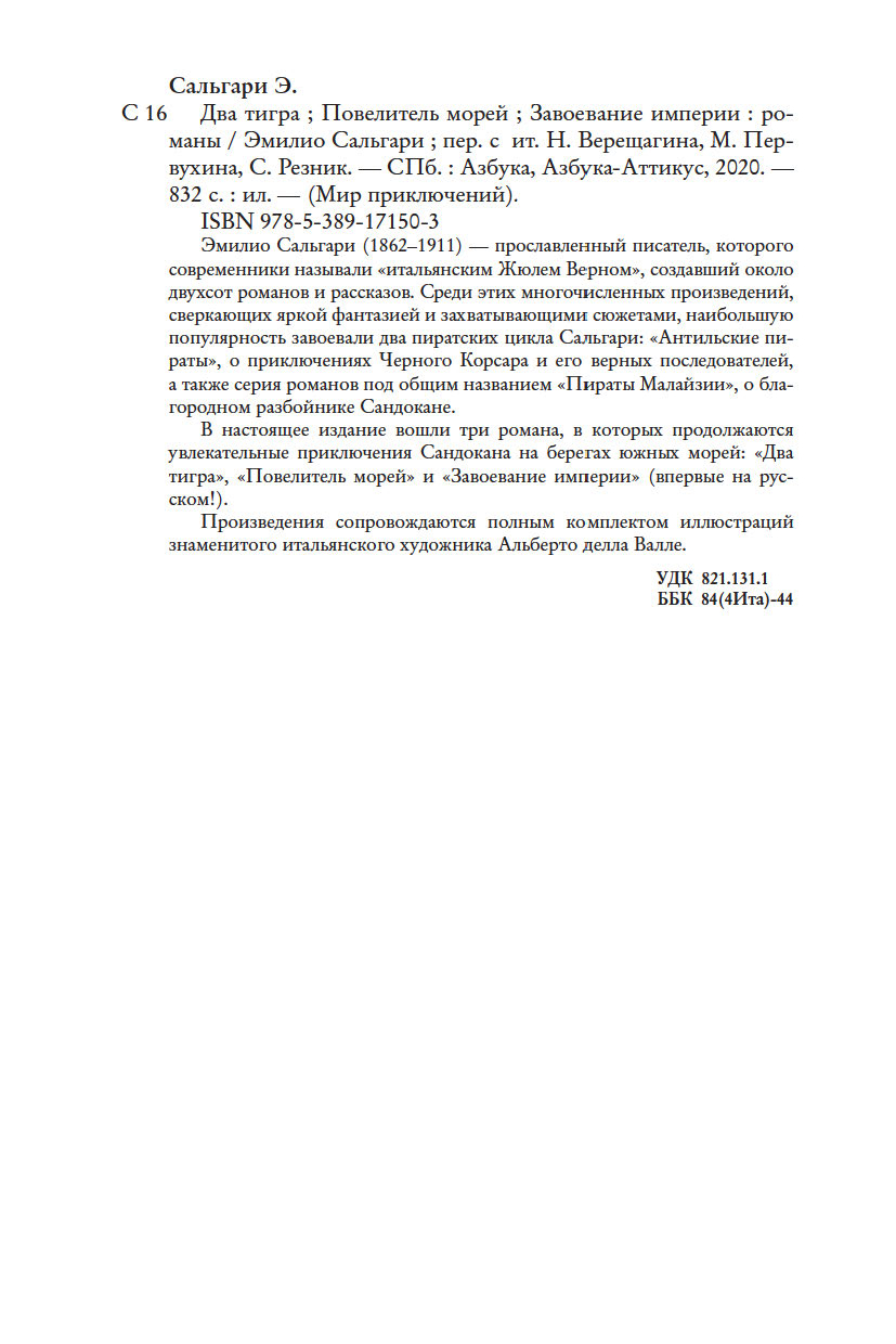 В настоящее издание вошли три романа, в которых продолжаются увлекательные приключения Сандокана на берегах южных морей: "Два тигра", "Повелитель Морей" и "Завоевание империи" (впервые на русском!).