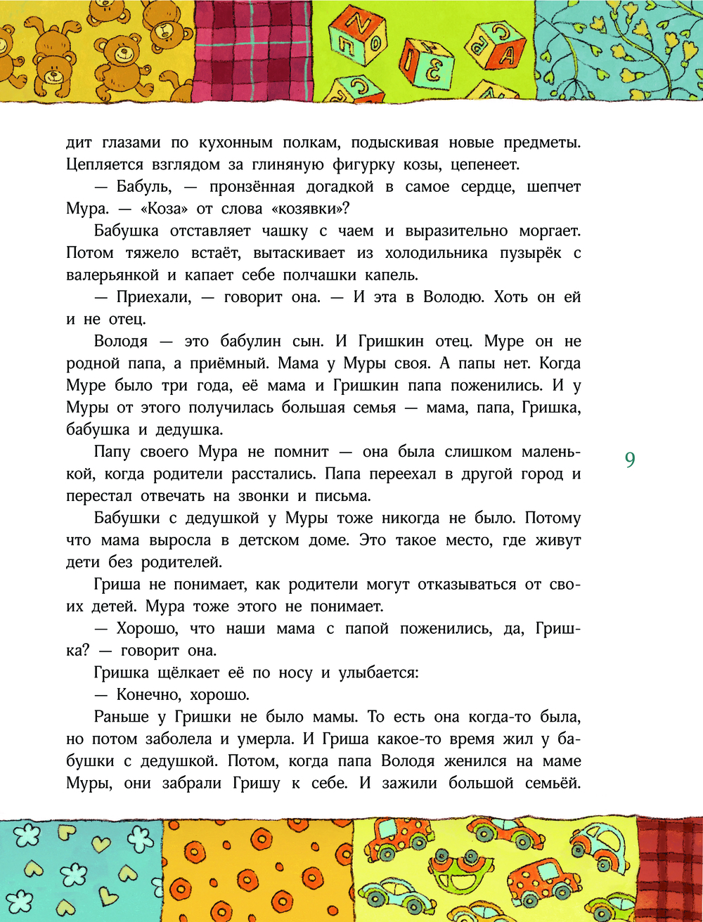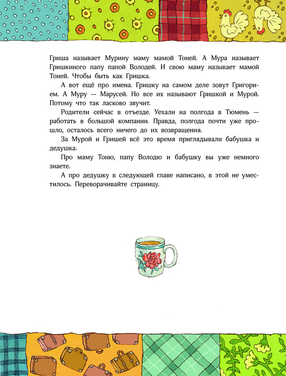Самых счастливых девочек в мире зовут Мурами, это мы знаем совершенно точно. У девочек Мур добрые дедушки, заботливые бабушки, любящие мамы и папы. А также шебутные старшие братья, которые немного портят мирное течение жизни, но это они нечаянно, не со зла. Приключений тоже у девочек Мур столько, что хоть отбавляй. Не верите? Прочитайте книжку и сами во всём убедитесь. Это будет смешное чтение. И совсем капелюшечку – горькое. Потому что жизнь – она разная. Как ни крути.