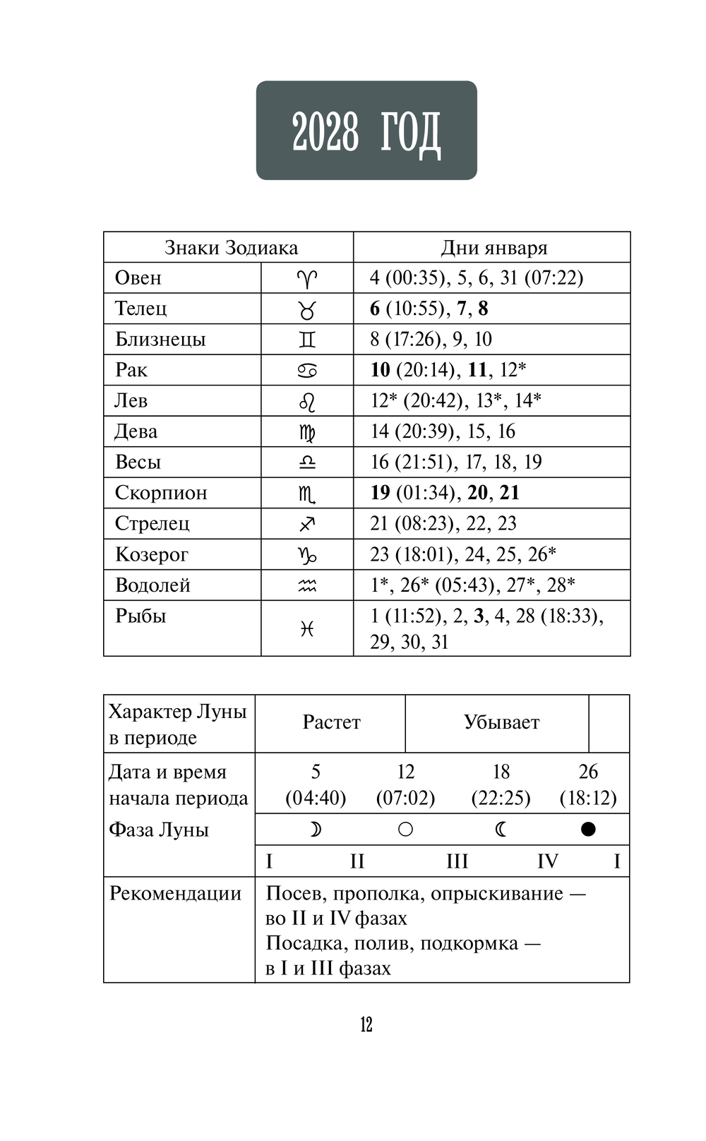 Здесь вы найдёте сведения как о лунных фазах, так и о положении Луны в небе относительно знаков зодиака. Вы сами сможете выбрать, на что ориентироваться. В календаре есть информация для сторонников любого подхода.