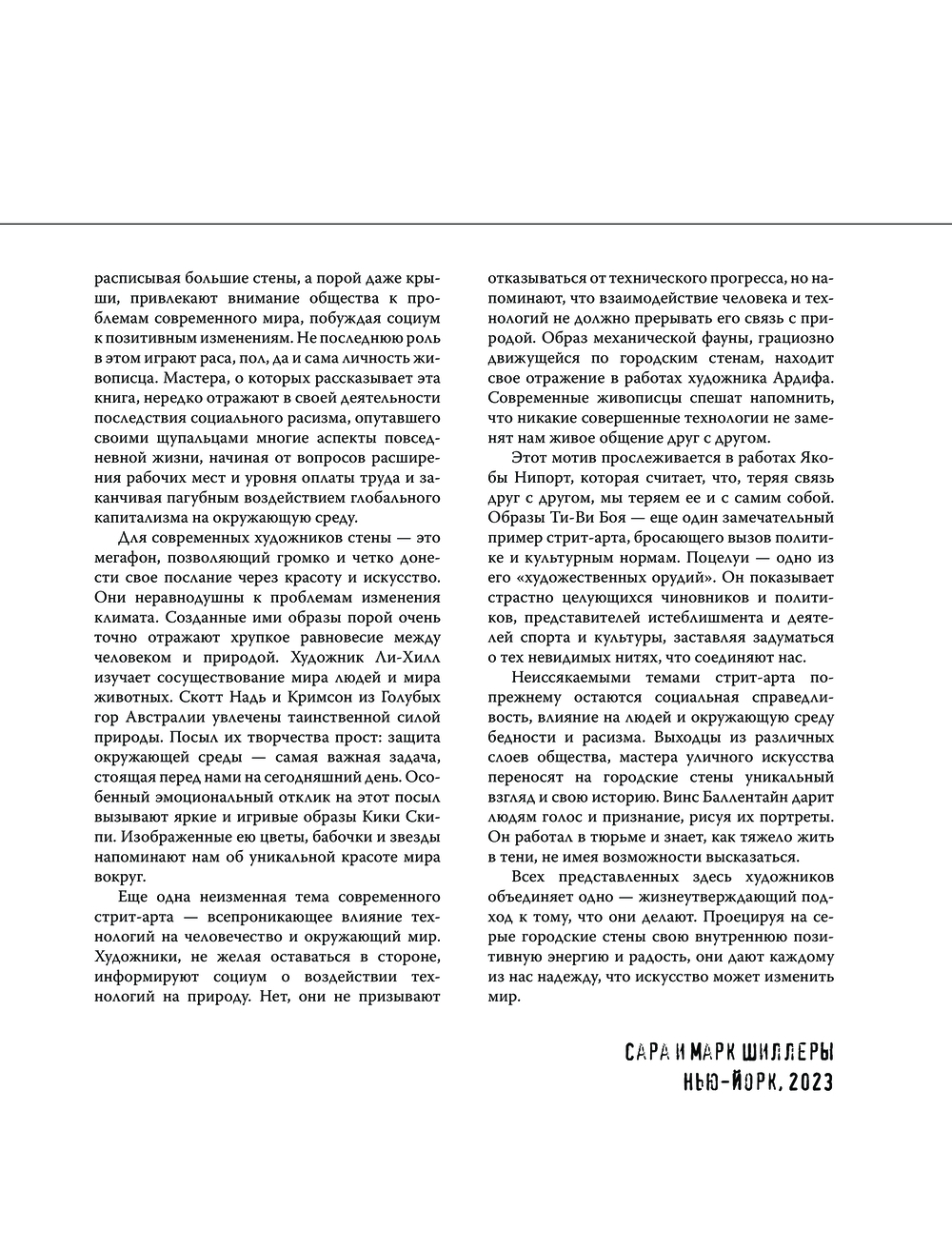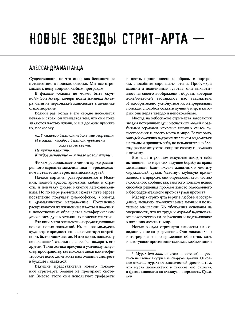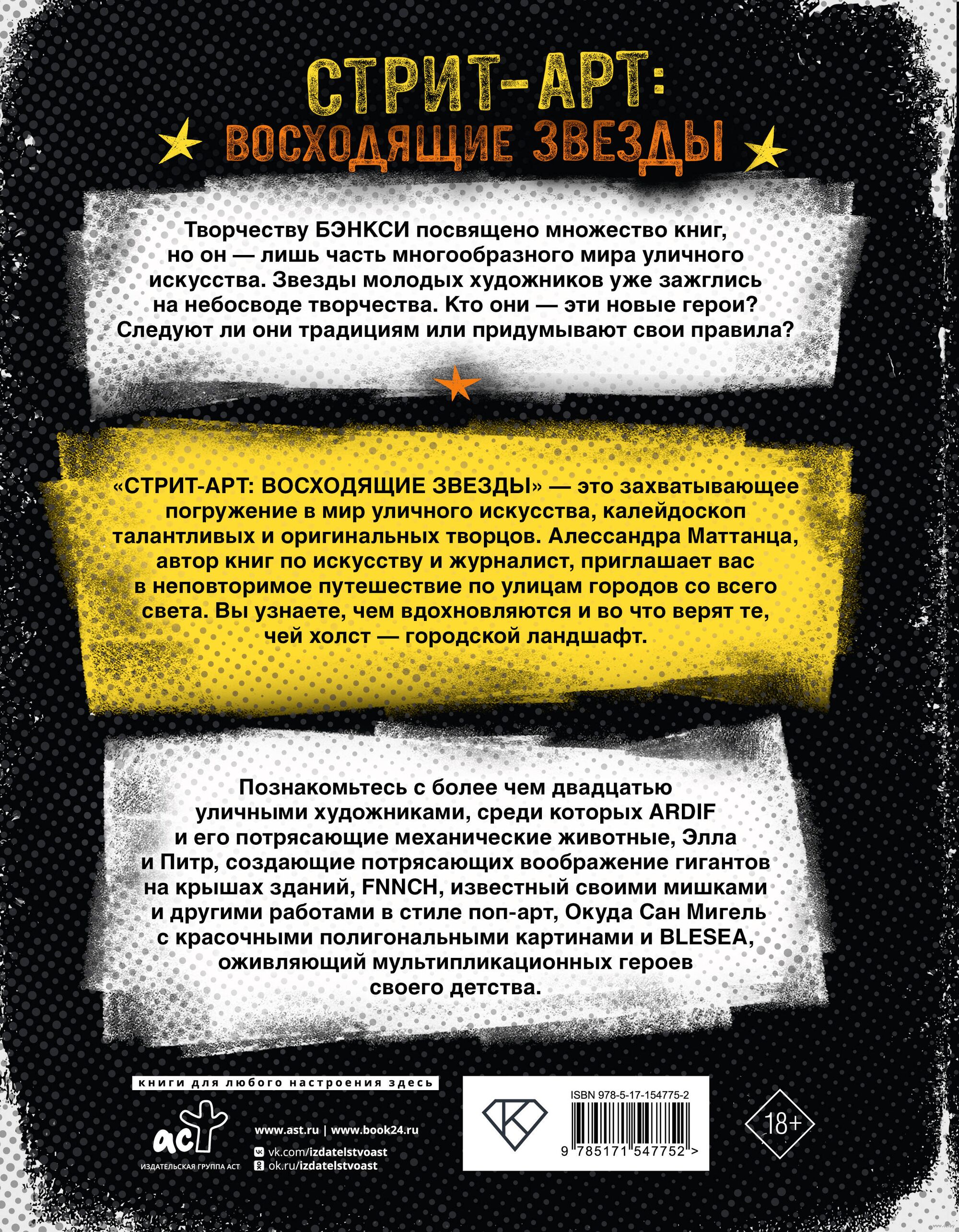 "Восходящие звезды стрит-арта" – это захватывающее погружение в мир уличного искусства, калейдоскоп талантливых и оригинальных творцов. Алессандра Маттанца, автор книг по искусству и журналист, приглашает вас в неповторимое путешествие по улицам городов со всего света. Вы узнаете, чем вдохновляются и во что верят те, чей холст – городской ландшафт.