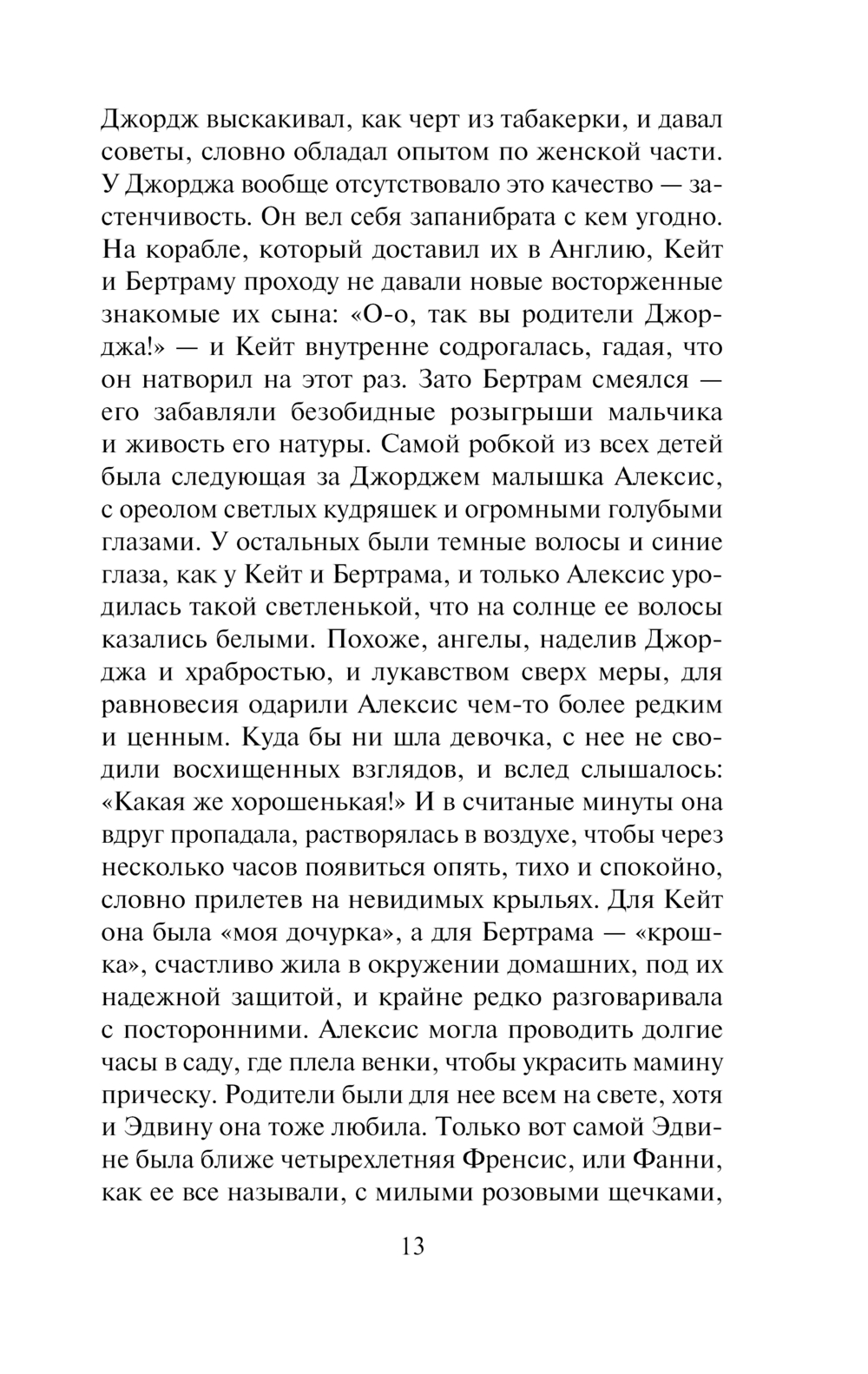 Брат Филипп, на которого Эдвина возлагала столько надежд, их не оправдывает, Джордж выбирает карьеру в зарождающемся кинематографе, а прекрасная Алексис, так и не сумевшая позабыть кошмар "Титаника", ведет себя все более странно. И лишь младшие, Фанни и Тедди, пока не доставляют хлопот...