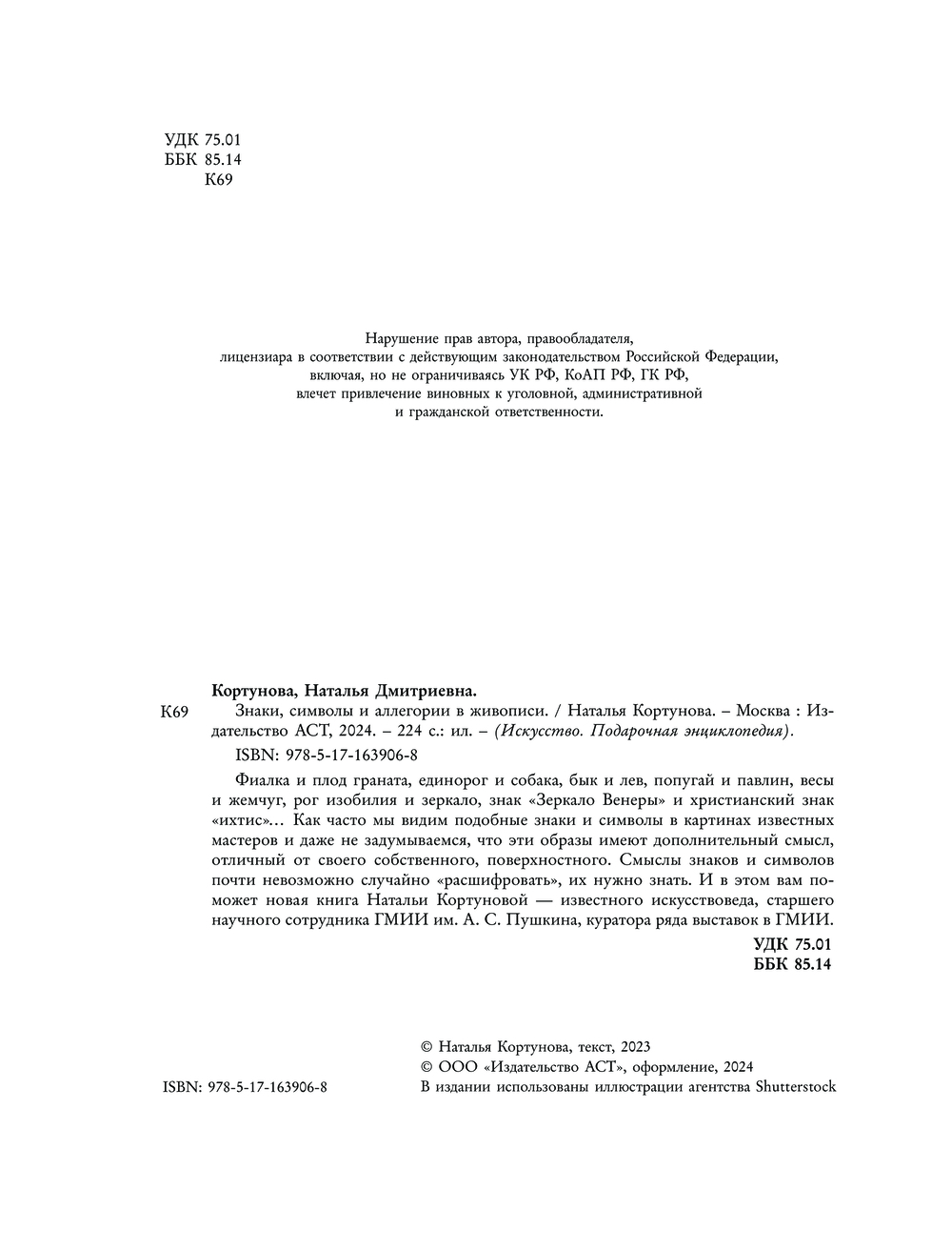 От создателей этих известных ныне произведений изобразительного искусства нас отделяют сотни лет, а порой и целые тысячелетия. Эти люди существовали в иной системе жизненных координат и верили в иных богов. Сохранившиеся с тех давних времен памятники призваны были не только радовать глаз и удивлять тонкостью исполнения, но и несли в себе зачастую определенную идею, которую современники считывали без особого труда. Мы же, получая при знакомстве с данными памятниками сугубо эстетическое удовольствие, нередко упускаем из виду их смысловое значение, не обращая внимания на говорящие детали или не понимая, что они могут подразумевать, и тем самым мы лишаем себя полноценного восприятия произведений искусства. Смыслы знаков и символов почти невозможно случайно "расшифровать", их нужно знать. И в этом вам поможет новая книга Натальи Кортуновой – известного искусствоведа, старшего научного сотрудника ГМИИ им. А.С. Пушкина, куратора ряда выставок в ГМИИ.