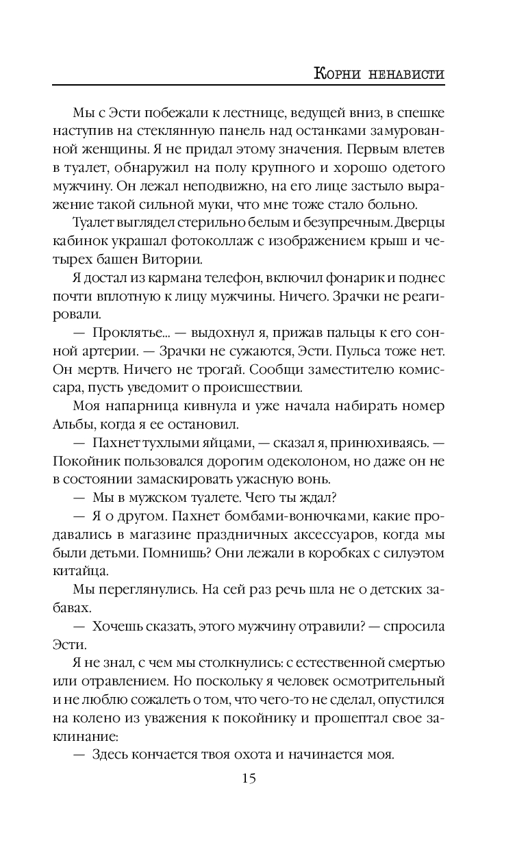 Но больше других это волнует инспектора полиции Унаи Лопеса де Айяла, знаменитого Кракена. Именно он расследует серию убийств, прокатившуюся по Витории. А способы, которыми преступник расправился с жертвами, подробно описаны в только что вышедшем романе. Отравление "шпанской мушкой"; замуровывание в стене; утопление человека, закрытого в бочке вместе с петухом, собакой, кошкой и гадюкой... Разгул Средневековья во всей своей жуткой мрачности.
