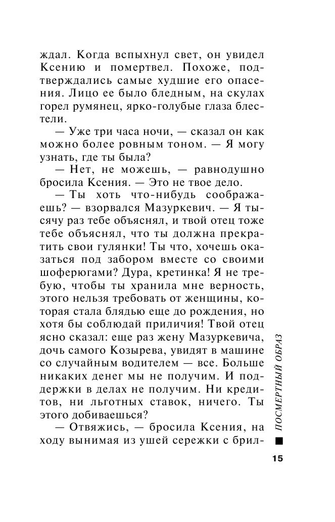 Кинозвезда Алина Вазнис убита, а мотивы преступления практически отсутствуют. Нет, какие-то, разумеется, имеются, но при ближайшем рассмотрении! Анастасия Каменская убеждается, что они или надуманы, или не "тянут" на убийство. Следовательно, истинная причина лежит где-то в сумрачных глубинах человеческого подсознания. Там такие несколько отвлеченные понятия, как зависть, ненависть, страх, вожделение, могут превратиться в навязчивые идеи и стать реальным поводом для преступления.