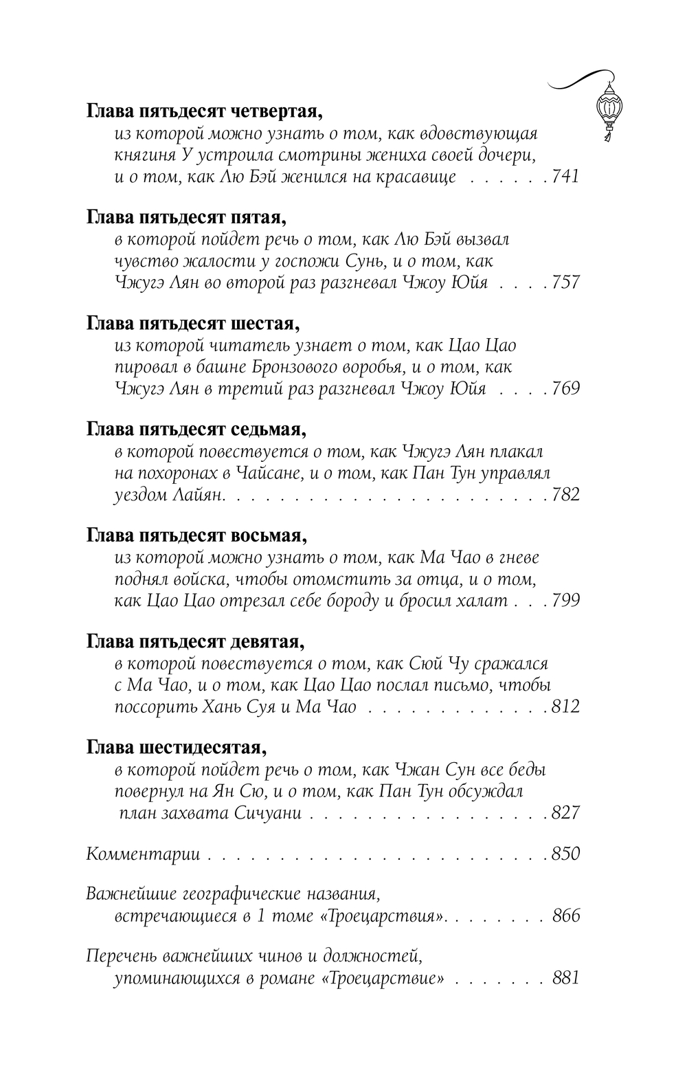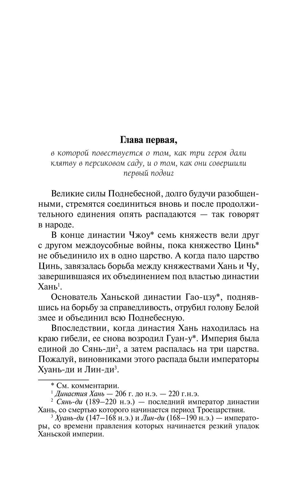 Сочетая исторические хроники с легендами и мифами, Ло Гуань-чжун сплетает масштабное полотно с десятками сюжетных линий и сотнями действующих лиц. Кровопролитные сражения и закулисные битвы за власть, героические подвиги и любовные приключения – и все это на фоне одного из самых драматичных моментов в истории Китая, когда единая Ханьская империя распалась на три независимых государства, беспрерывно воюющих друг с другом.