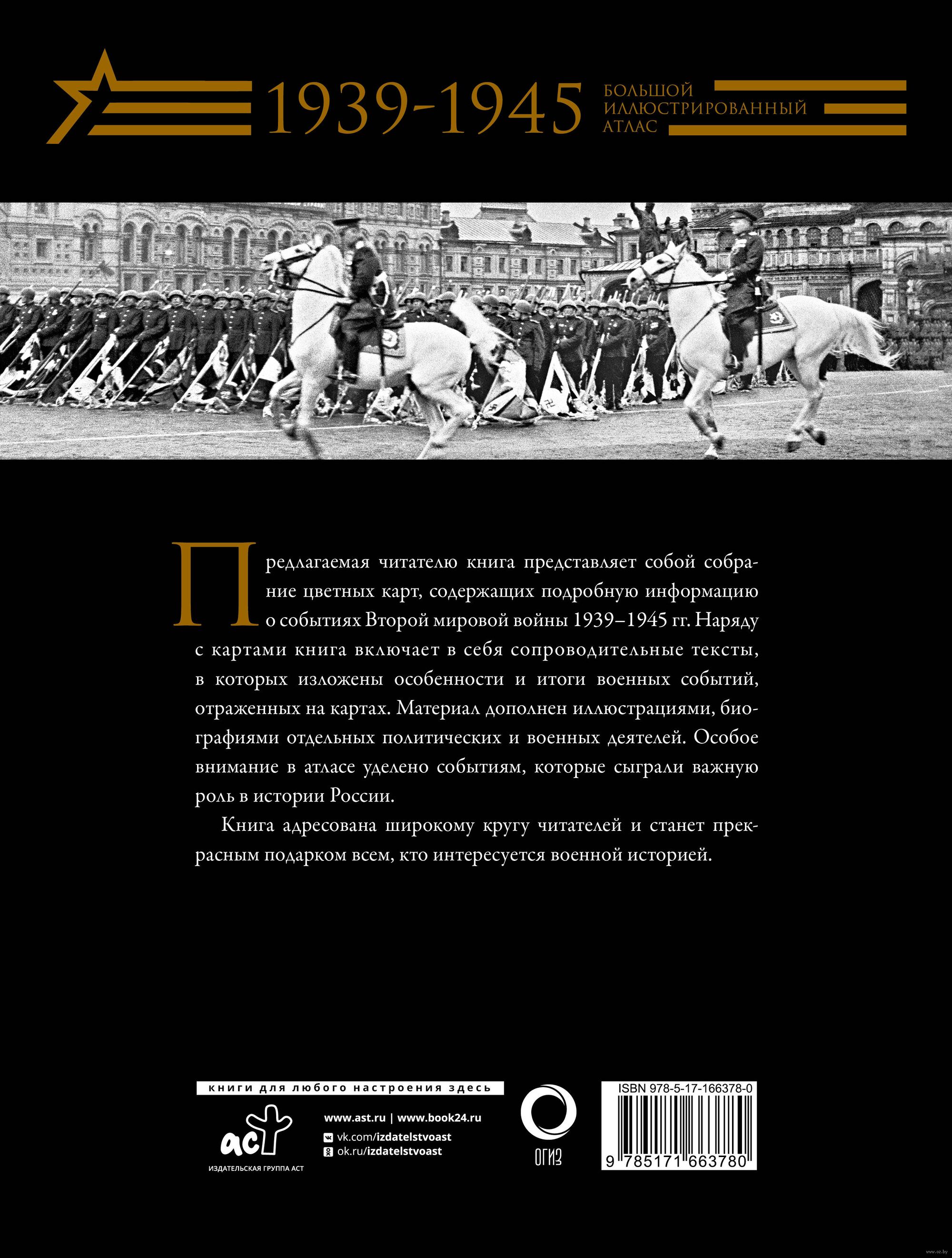 Предлагаемая читателю книга представляет собой собрание цветных карт, содержащих подробную информацию о событиях Второй мировой войны 1939-1945 гг. Наряду с картами книга включает в себя сопроводительные тексты, в которых изложены особенности и итоги военных событий, отраженных на картах. Материал дополнен иллюстрациями, биографиями отдельных политических и военных деятелей. Особое внимание в атласе уделено событиям, которые сыграли важную роль в истории России.
