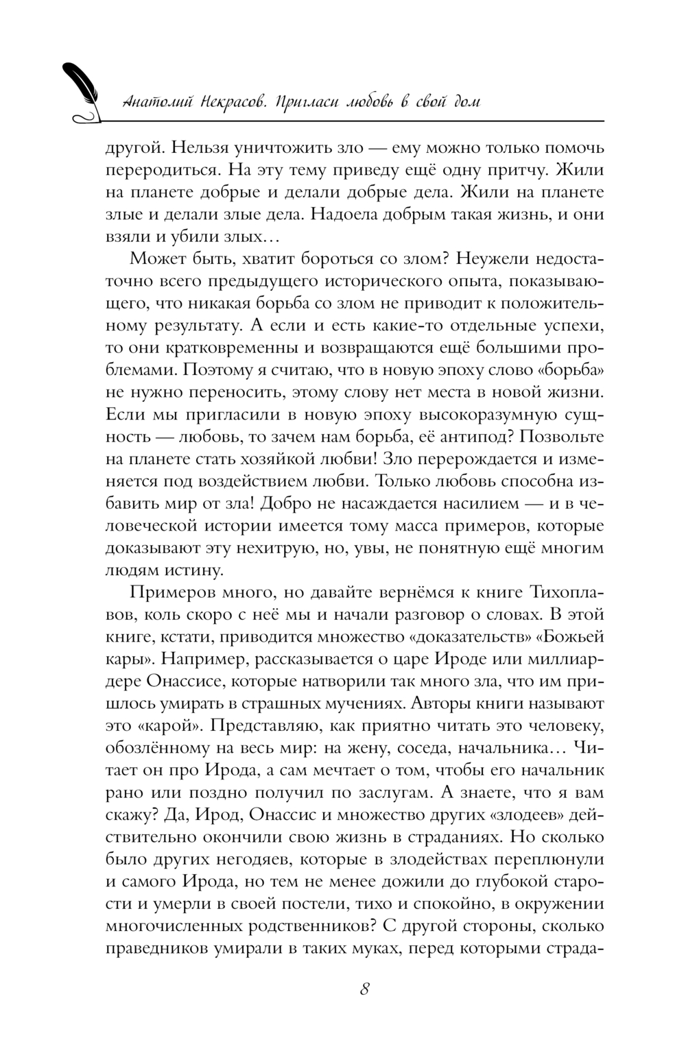 Знайте, любовь приходит в каждый дом! Эта книга – о том, как позвать и сохранить ее. В своих рассказах психолог Анатолий Некрасов показывает множество граней любви, чтобы вы не пропустили ее. Вы не только увидите любовь в разных проявлениях, но и научитесь чувствовать и понимать ее.