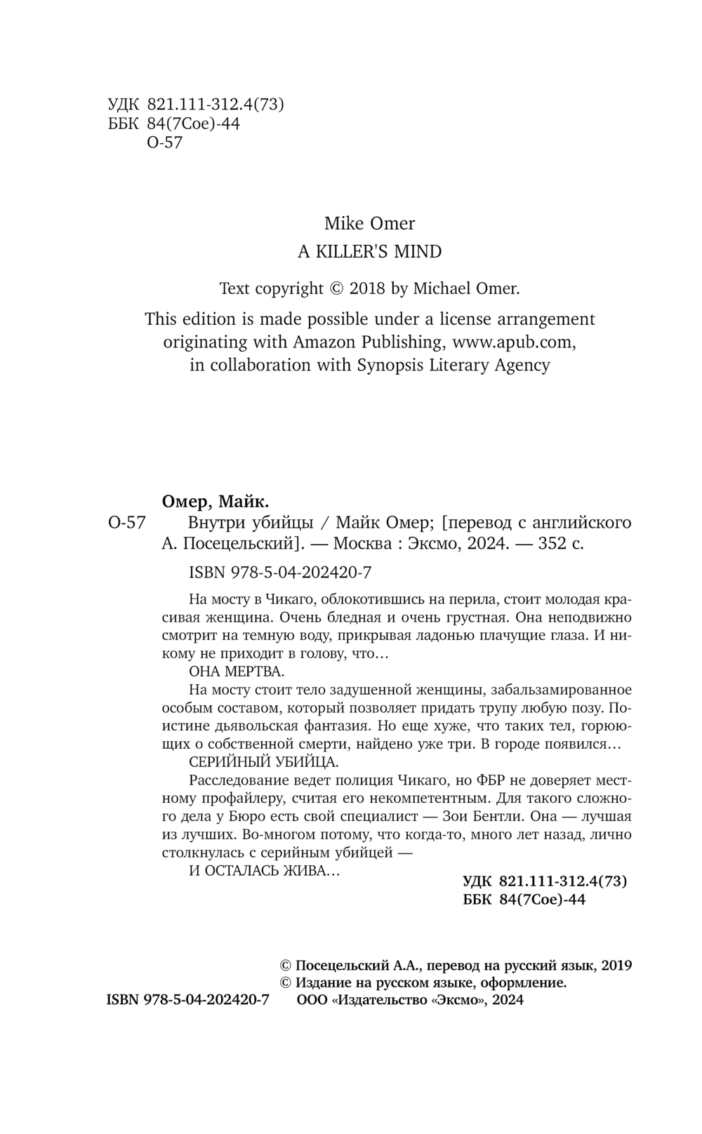 Расследование ведет полиция Чикаго, но ФБР не доверяет местному профайлеру, считая его некомпетентным. Для такого сложного дела у Бюро есть свой специалист – Зои Бентли. Она – лучшая из лучших. Во-многом потому, что когда-то, много лет назад, лично столкнулась с серийным убийцей...