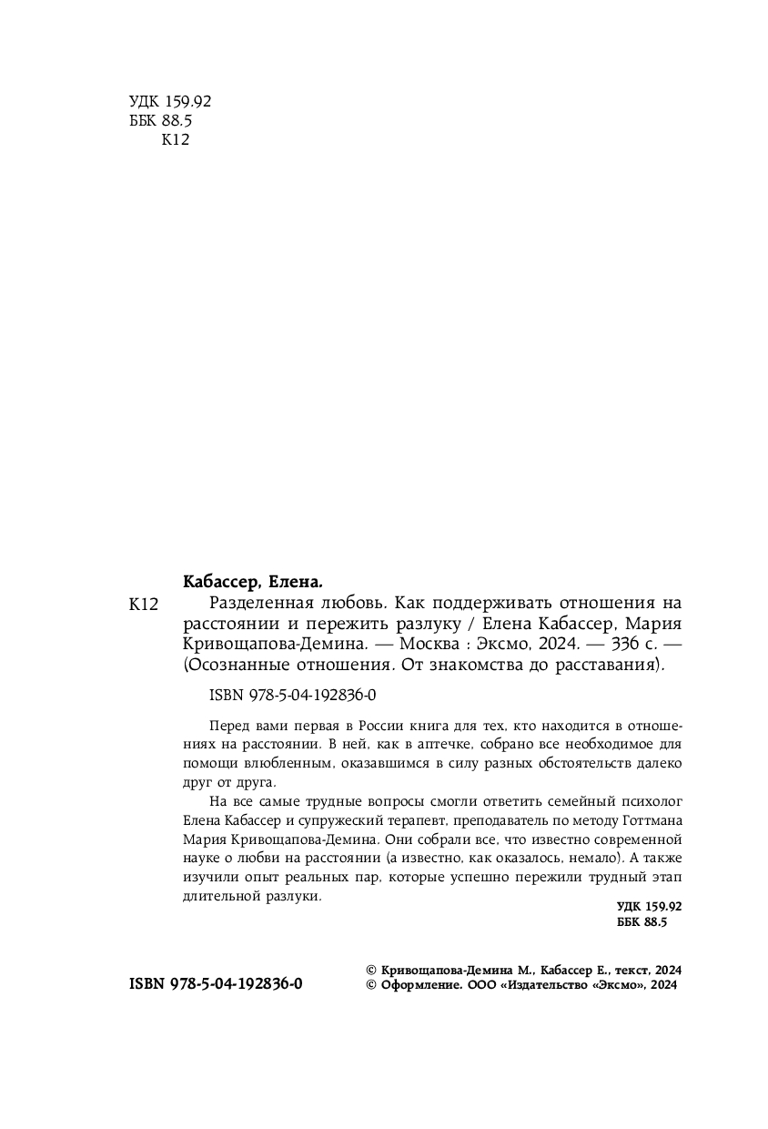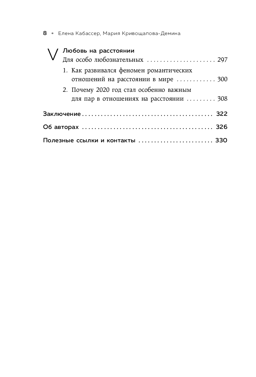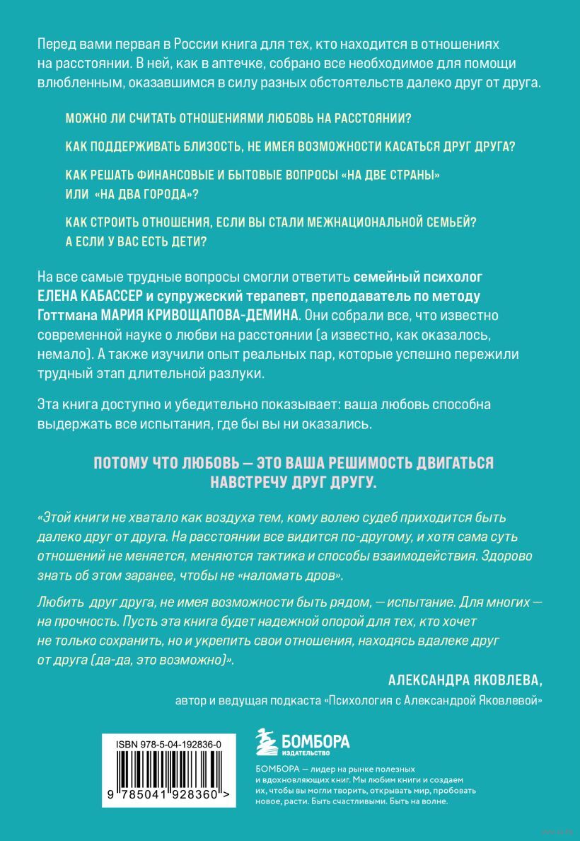 На все самые трудные вопросы смогли ответить семейный психолог Елена Кабассер и супружеский терапевт, преподаватель по методу Готтмана Мария Кривощапова-Демина. Они собрали все, что известно современной науке о любви на расстоянии (а известно, как оказалось, немало). А также изучили опыт реальных пар, которые успешно пережили трудный этап длительной разлуки.