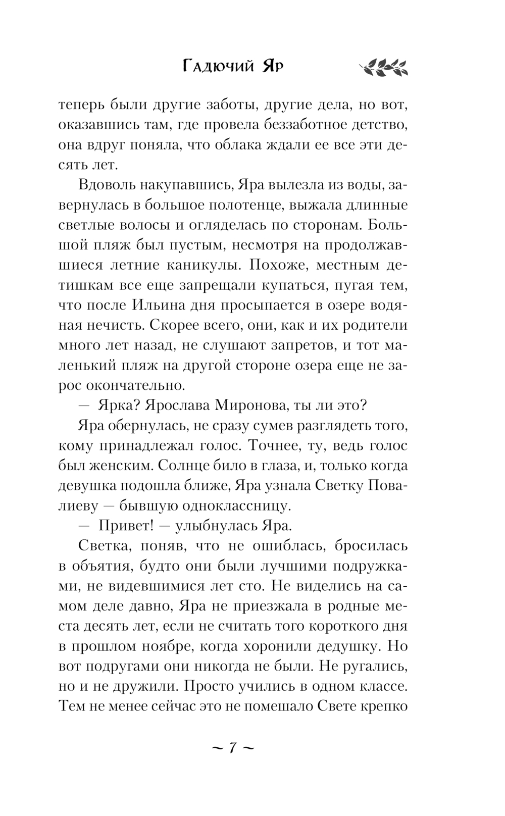 Ярослава выросла в Гадючьем Яре. Дедушка говорил ей, что она особенная. Не такая, как все, поэтому может видеть вещи, недоступные другим людям. Бабушка советовала об этом помалкивать, чтобы не прослыть сумасшедшей. Однажды ночью Ярослава собрала вещи и спешно уехала. На то у нее были причины, о которых она никому не сказала. И вот спустя десять лет она вернулась обратно. За это время Гадючий Яр изменился до неузнаваемости, но не всем по вкусу такие изменения. Ярослава не хотела занимать чью-то сторону, но, когда вокруг начали умирать молодые девушки, у нее не осталось выбора.