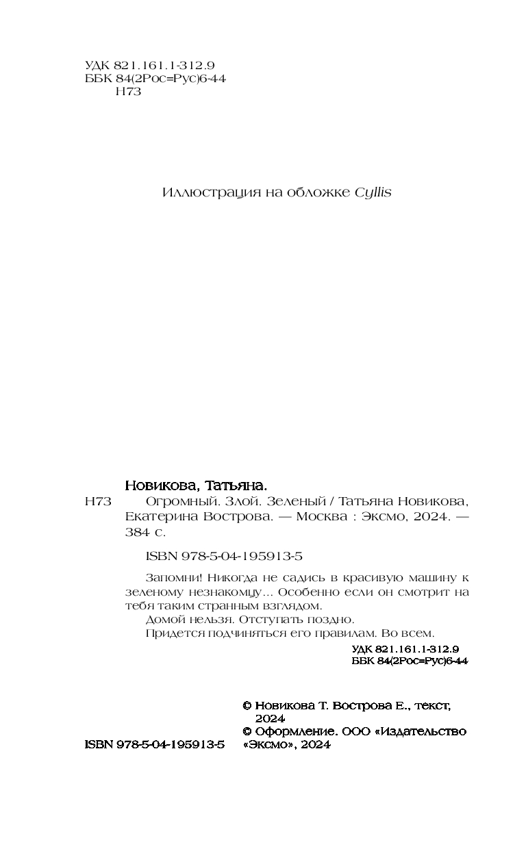 | Изготовитель | ООО «Издательство «Эксмо». РФ, г. Москва, ул. Клары Цеткин, 18, корп. 5 |