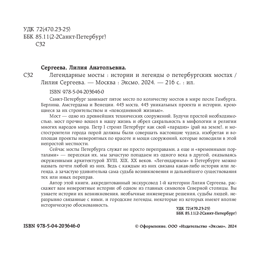 Автор этой книги, аккредитованный экскурсовод 1 категории Лилия Сергеева, расскажет вам невероятные истории об одном из главных символов северной столицы. Вы узнаете истории их возникновения, необычные инженерные решения, судьбы людей, неразрывно связанные с ними, и городские легенды, некоторые из которых имеют вполне историческую обоснованность.