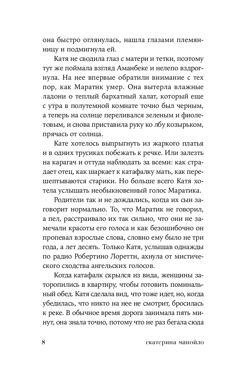 Героиня романа Катя – дочь русской и казаха – живет в маленьком приграничном городе, и две эти культуры оказали равное влияние на формирование ее личности: противоречивой, сложной, яркой. Она уезжает в Москву от глубокой личной трагедии, но вырваться из родных мест навсегда невозможно: они притягивают, заставляют вернуться хотя бы ненадолго и пытаются сломать.