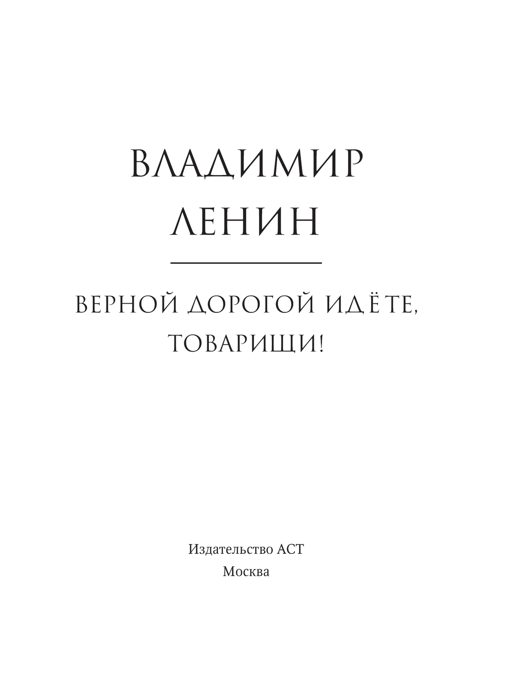 "Верной дорогой идёте, товарищи" – сборник цитат из философского труда Владимира Ильича Ленина "Государство и революция". В своём труде Ленин пояснял суть теории Карла Маркса и Фридриха Энгельса. Это было необходимо, чтобы избежать искажения оригинальных идей немецких политических деятелей.