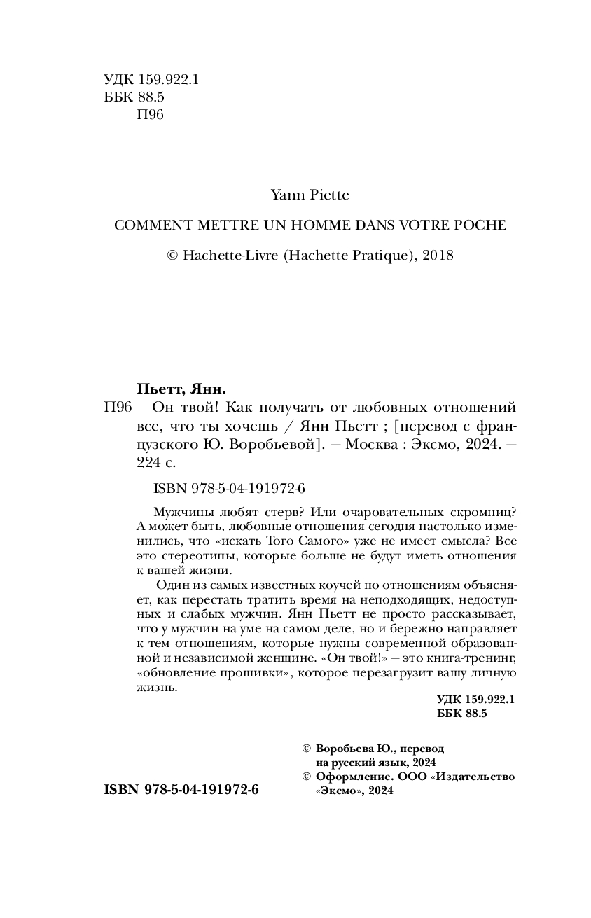 "Он твой" – это книга-тренинг, "обновление прошивки", которое перезагрузит вашу личную жизнь.