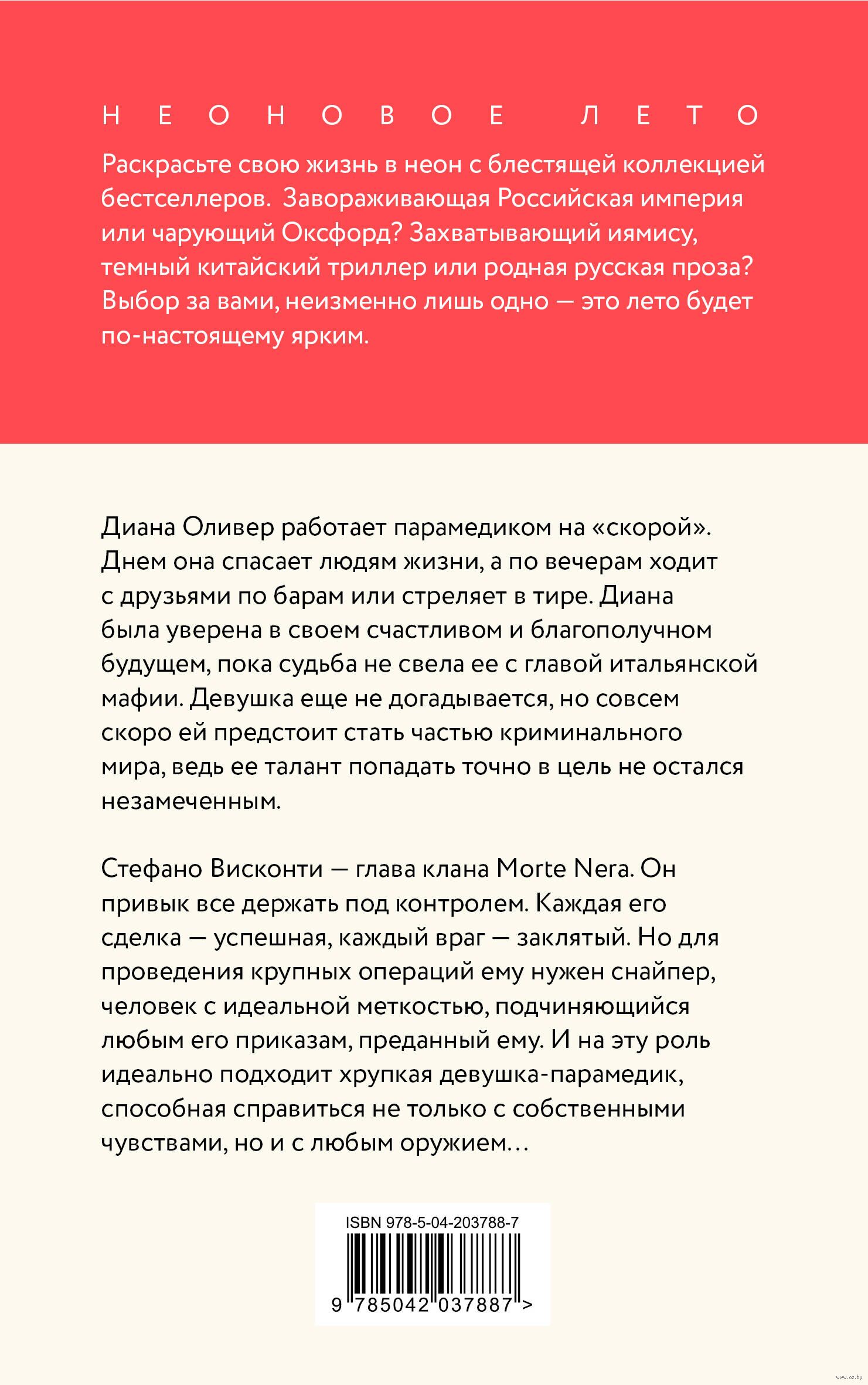 Стефано Висконти – глава клана "Morte Nera". Он привык все держать под контролем. Каждая его сделка – успешная, каждый враг – заклятый. Но для проведения крупных операций ему нужен снайпер, человек с идеальной меткостью, подчиняющийся любым его приказам, преданный ему. И на эту роль идеально подходит хрупкая девушка-парамедик, способная справиться не только с собственными чувствами, но и с любым оружием...
