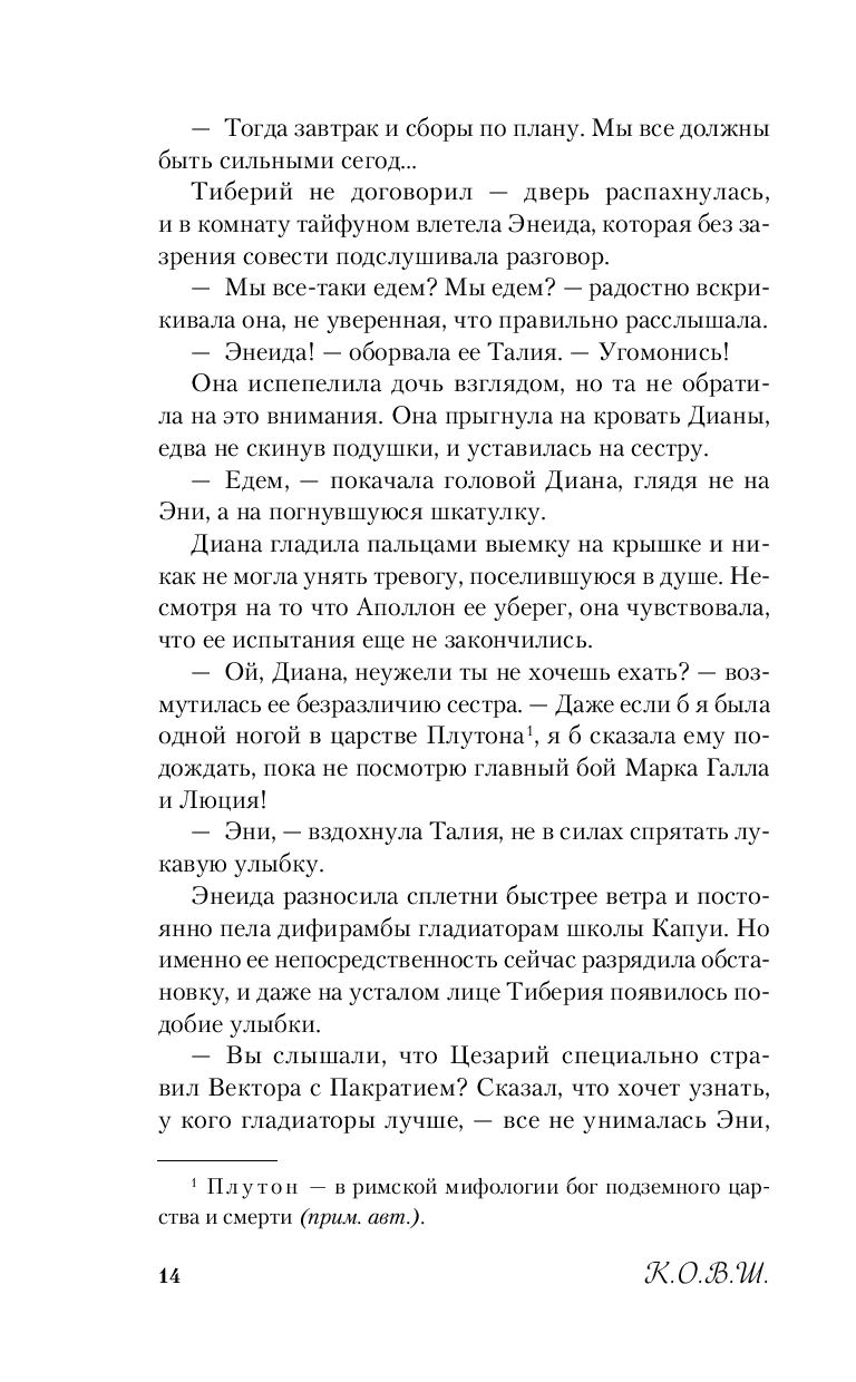 Марк Галл ненавидит римлян, обративших его в рабство, и не верит ни единому их слову, но Диана совсем не похожа на других. Узнавая свою новую госпожу лучше, Марк Галл понимает, что пойдет на все лишь бы защитить Диану, даже если для этого придется сразиться с самим Аполлоном.