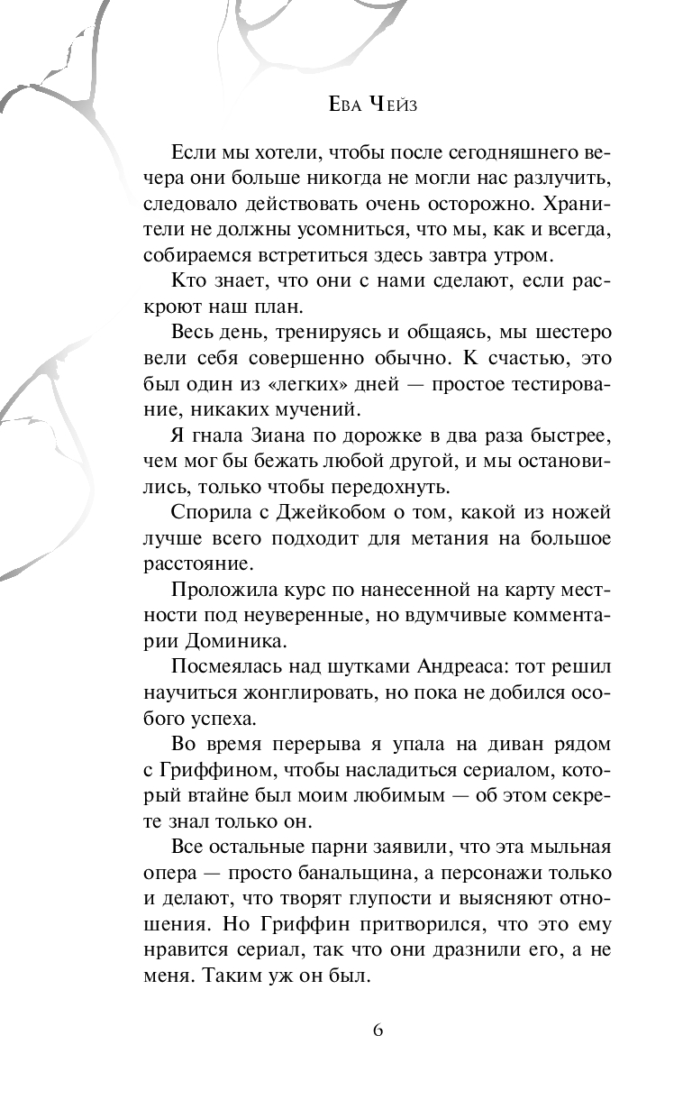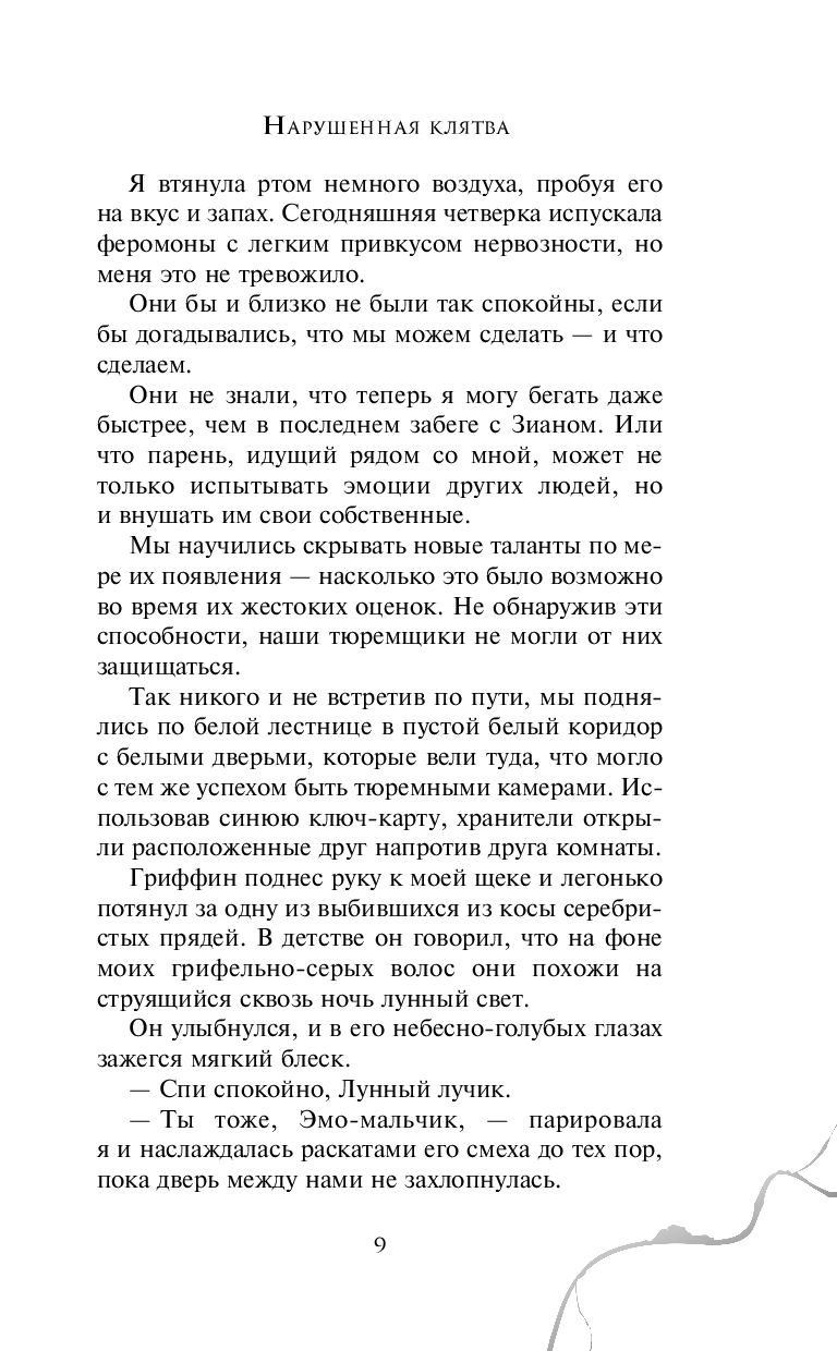 Своим разрушительным криком Рива способна убить любого. Дар Гриффина заключается в том, чтобы чувствовать и контролировать эмоции других. Джейкоб владеет телекинезом. Зиан – оборотень, обладающий острым слухом и способный видеть сквозь стены. Андреас проникает в воспоминания других. А дар Доминика – исцеление.