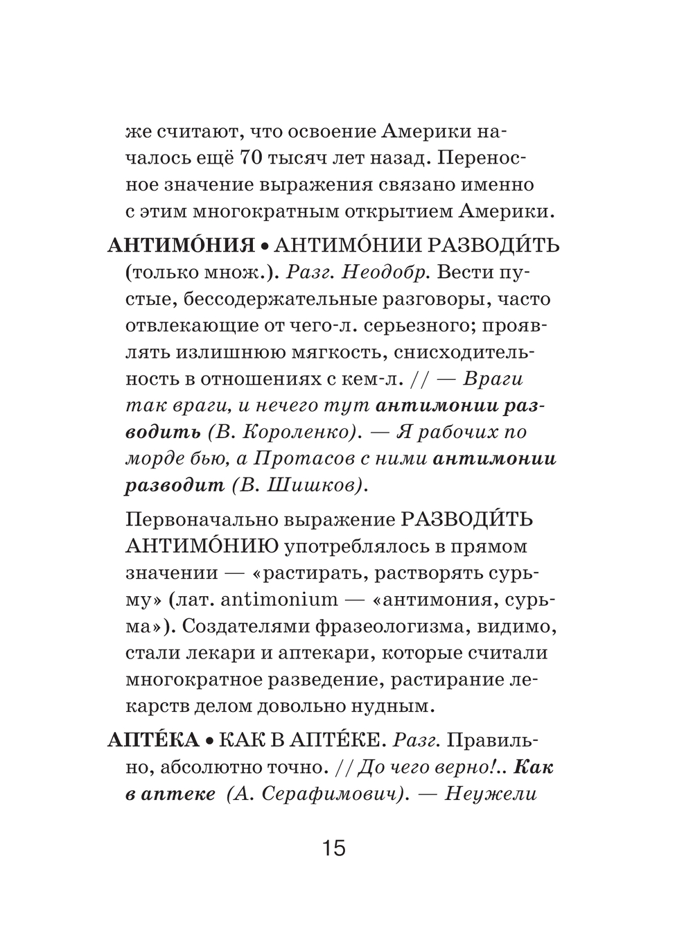 Данный словарь содержит около 1000 фразеологизмов. Их использование проиллюстрировано примерами из литературы или разговорной речи. Каждый фразеологизм снабжен краткой этимологической справкой.