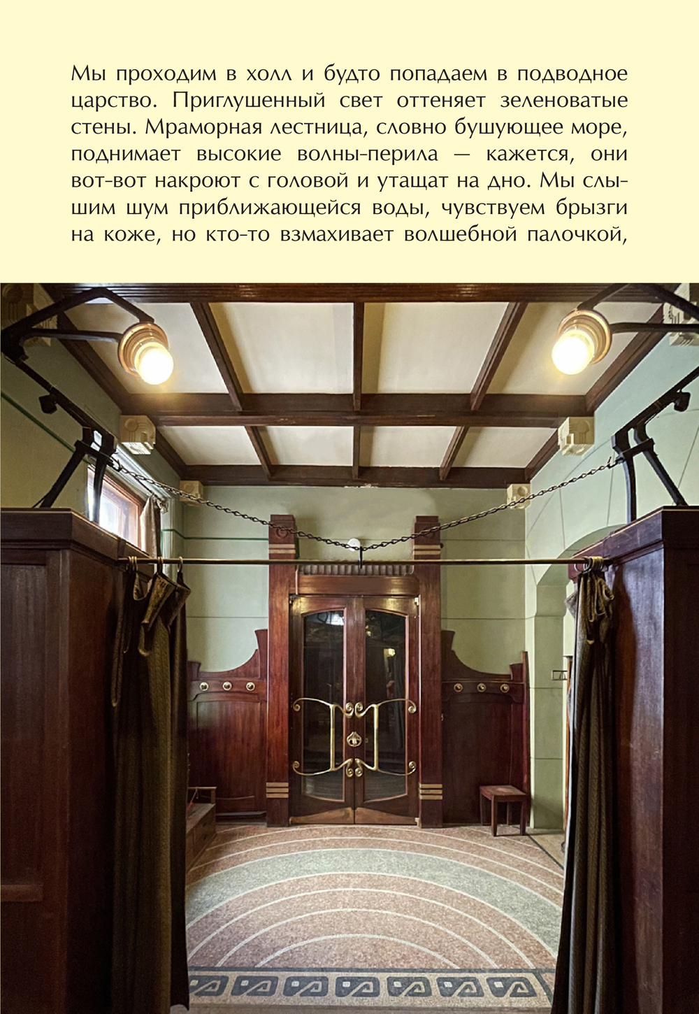 Совершите путешествие в прошлое. Сидя за обеденным столом с Алексеем Толстым, послушайте его истории о парижских устрицах и былой роскоши. Подсмотрите, как Максим Горький отгораживается книжными шкафами от подводных обитателей дома в стиле модерн.