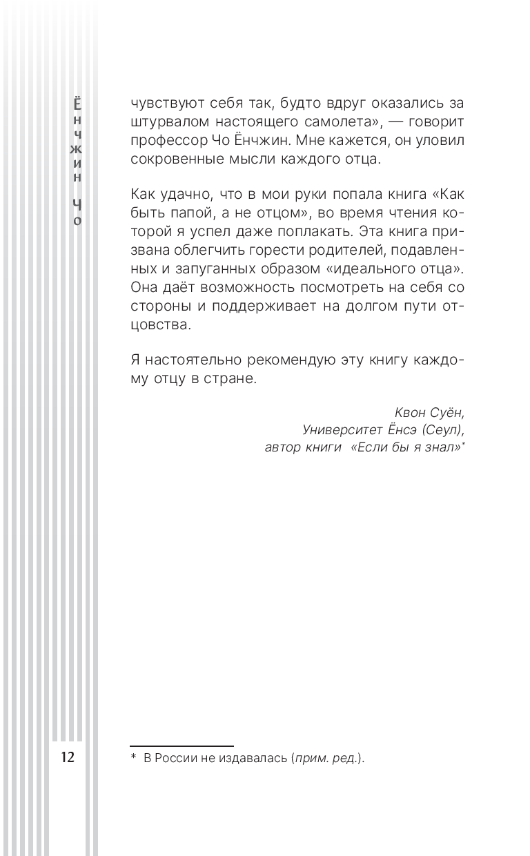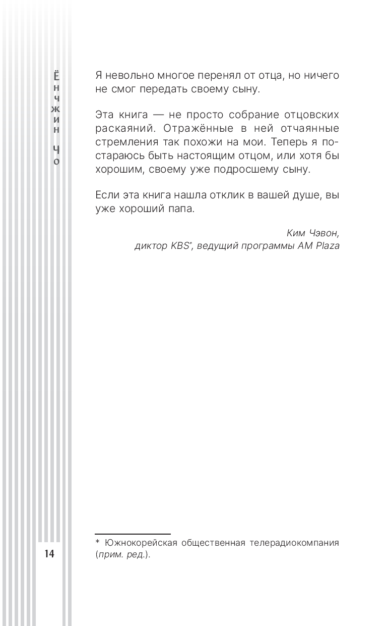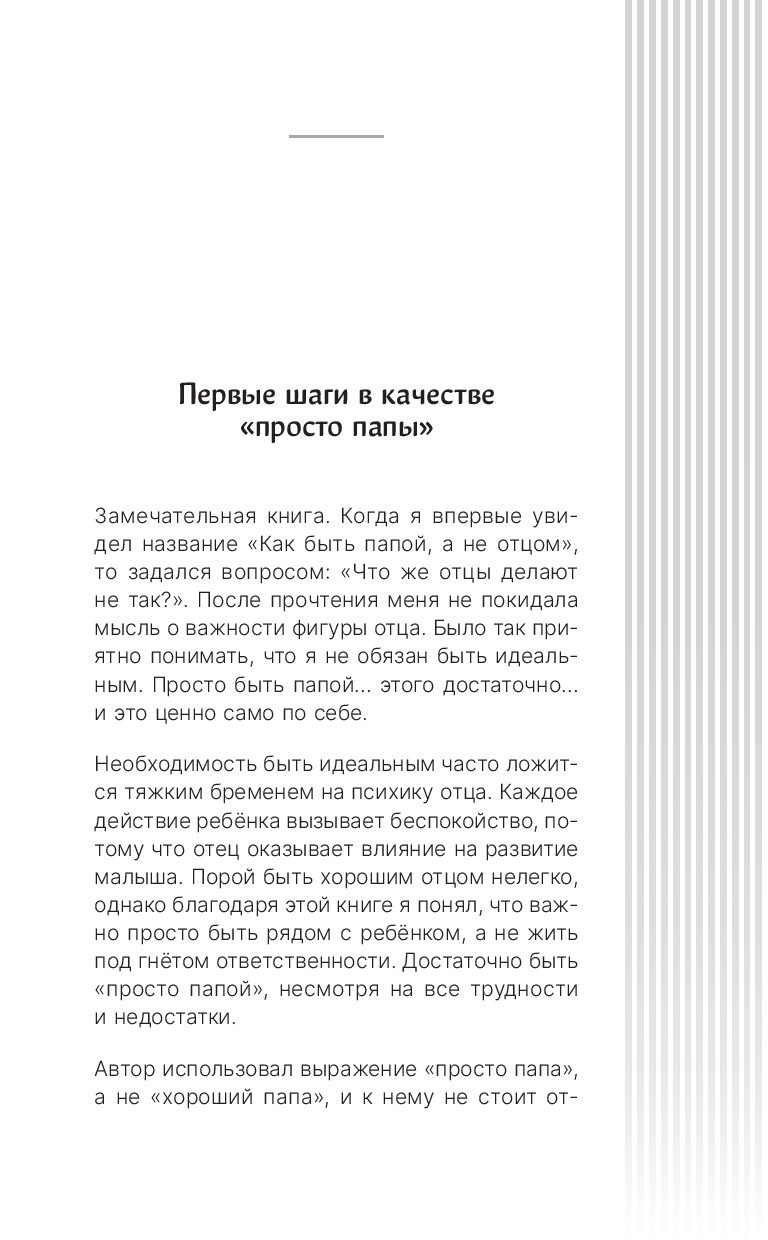 В отличие от теплоты и любви, о которых большинство людей рефлекторно вспоминают при слове "мать", слово "отец" вызывает противоречивые чувства. В корейском обществе считается, что отец – это опора семьи, поэтому, когда рождается ребенок, мужчина изо всех сил старается вести себя в соответствии с ролью "хорошего отца". Но кто такой "хороший отец"? Это мифическое существо, которым старается стать каждый? Это тот, кто все знает, и кому никогда не бывает больно или страшно. Но ребенку нужен не "хороший отец", а "просто папа". Для этого достаточно быть самим собой и находиться рядом.