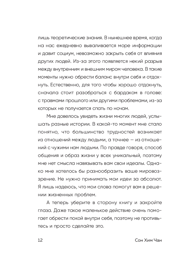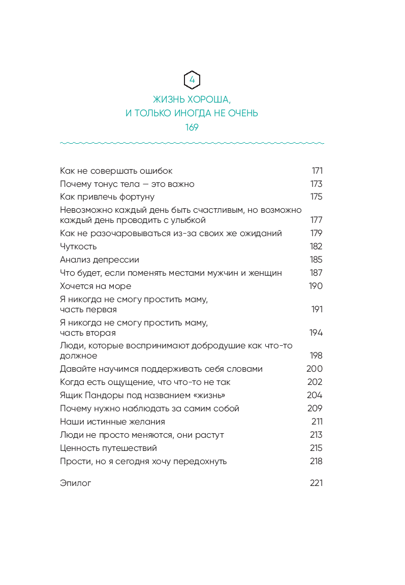 Эта книга предлагает вам заземлиться на мгновение и вспомнить о том, что вы живы. Вы есть. Она учит расслабляться, тормозить бесконечный поток мыслей в голове, отпускать то, что больше не радует и не греет. А еще эта книга показывает другую дорогу. Дорогу к себе.