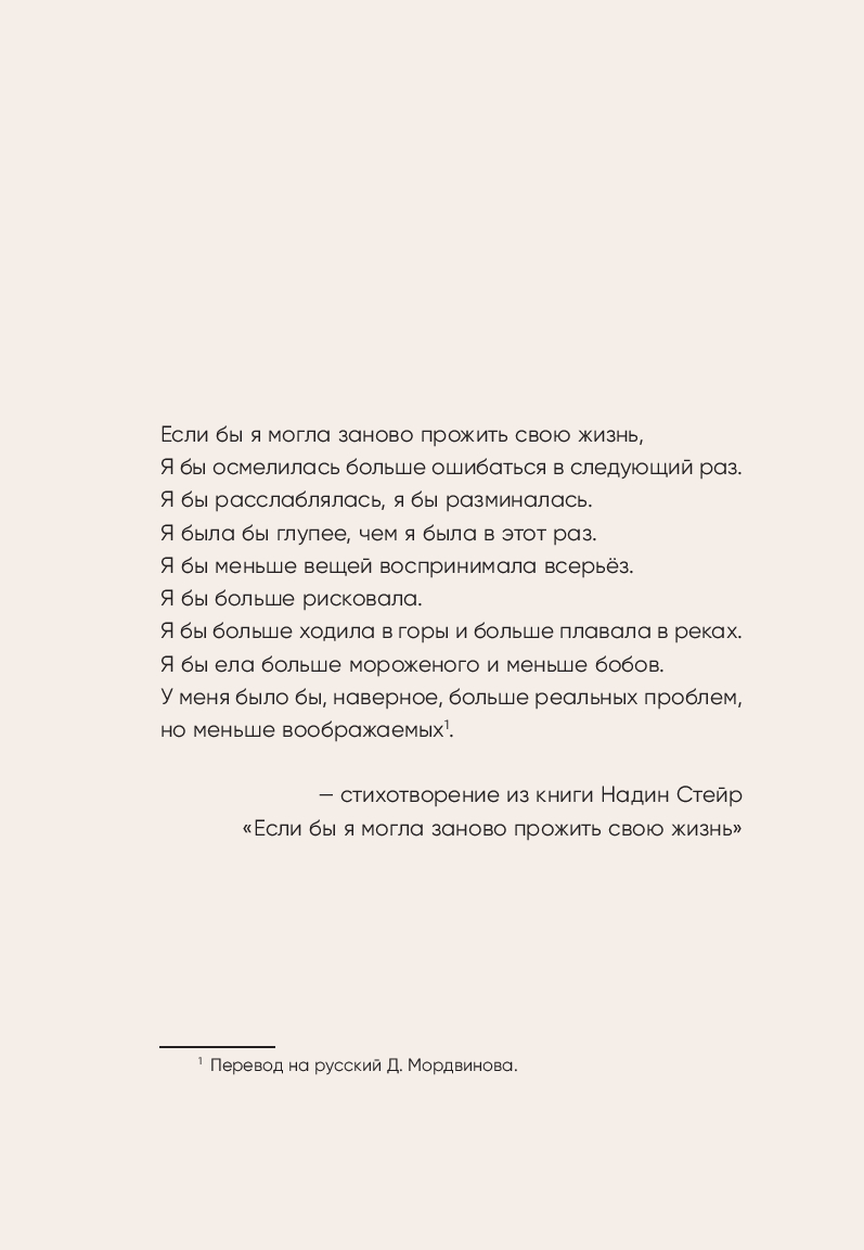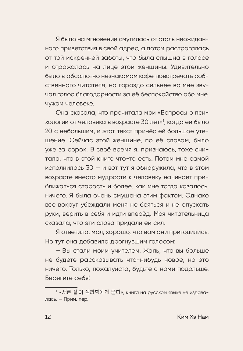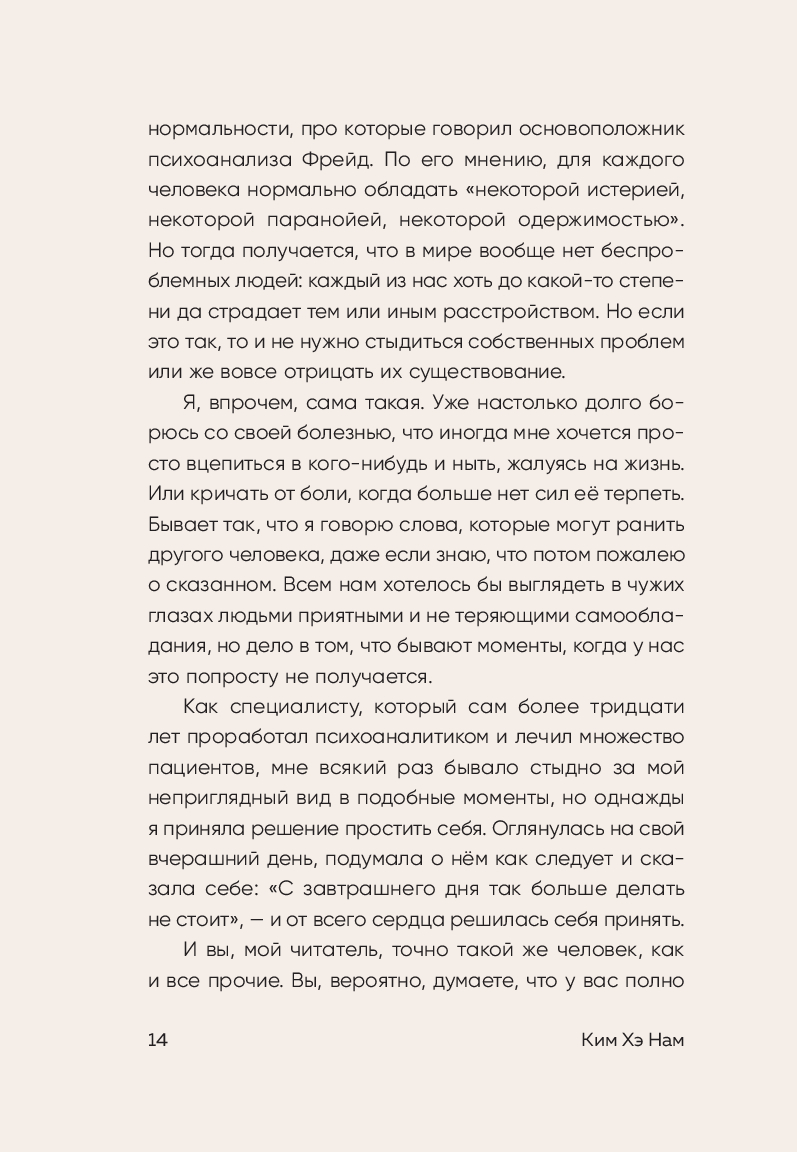 Эта книга – психотерапевтический прием у Ким Хэ Нам. Пусть он и не проходит в стенах ее клиники, но вы – ее дорогой посетитель – узнаете, как важно действовать и не бояться ошибаться. Она вдохновит вас идти своей дорогой, верить сердцу и следовать за ним, даже когда очень страшно.