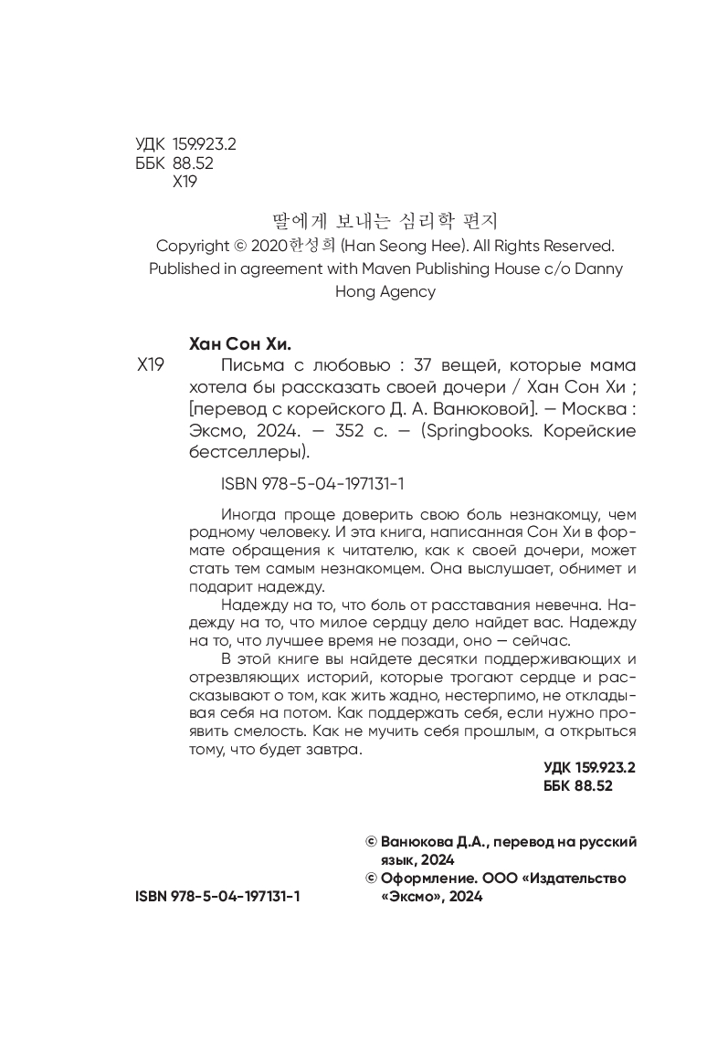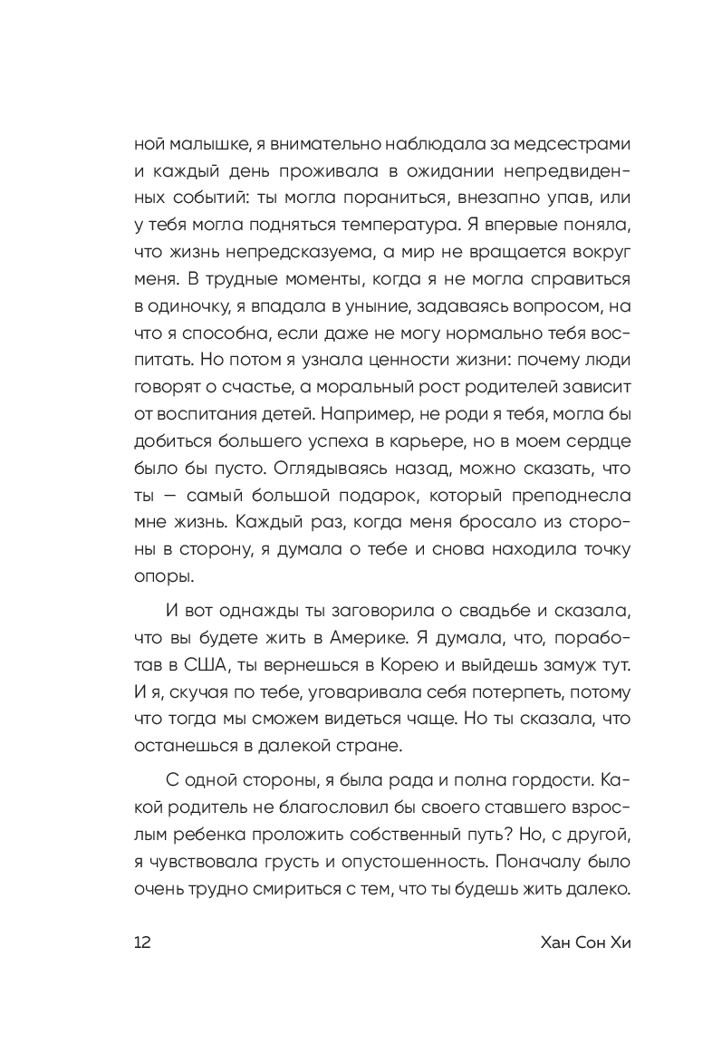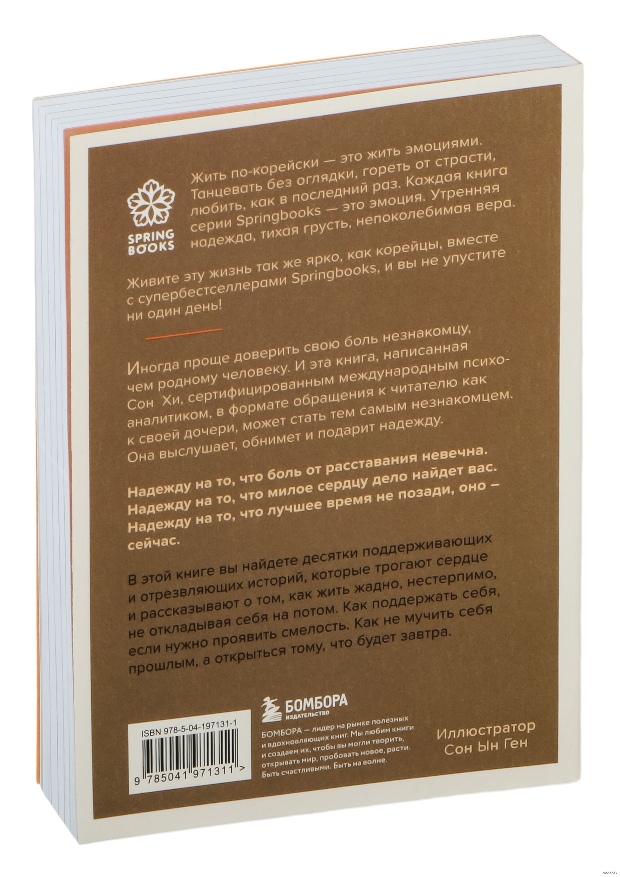 Иногда проще доверить свою боль незнакомцу, чем родному человеку. И эта книга, написанная Сон Хи в формате обращения к читателю, как к своей дочери, может стать тем самым незнакомцем. Она выслушает, обнимет и подарит надежду.