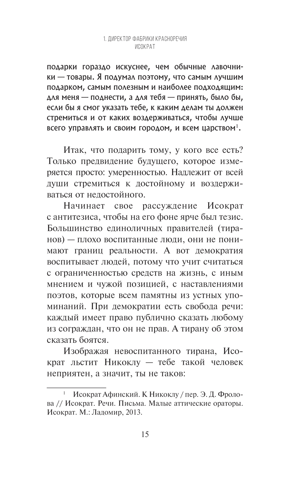 В эпоху Возрождения Лоренцо Валла и Хуан Луис Вивес размышляли о роли оратора в условиях сложной политической ситуации. Мыслители и писатели Нового времени Шарль Перро, Михаил Ломоносов и Георг Гегель разрабатывали новые правила риторики как социального воображения, воспитывающего ответственных граждан. Риторика продолжает быть актуальной и в наши дни: ораторское искусство помогает добиваться успеха в профессиональной деятельности, работать с социальными запросами и улучшать сферу коммуникации. В настоящее издание вошли фрагменты работ известных античных, западноевропейских и российских авторов.