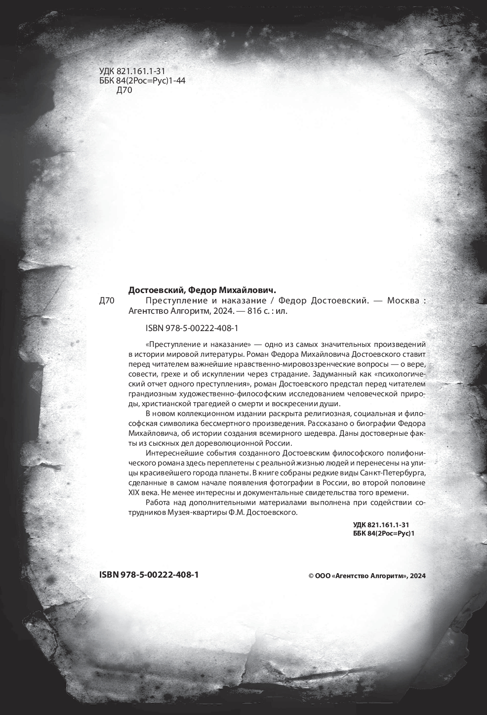 В новом коллекционном издании раскрыта религиозная, социальная и философская символика бессмертного произведения. Рассказано о биографии Федора Михайловича, об истории создания всемирного шедевра. Даны достоверные факты из сыскных дел дореволюционной России.
