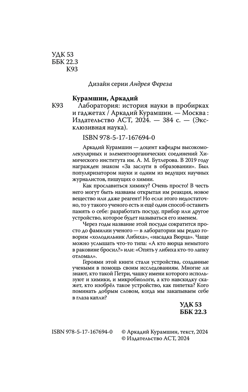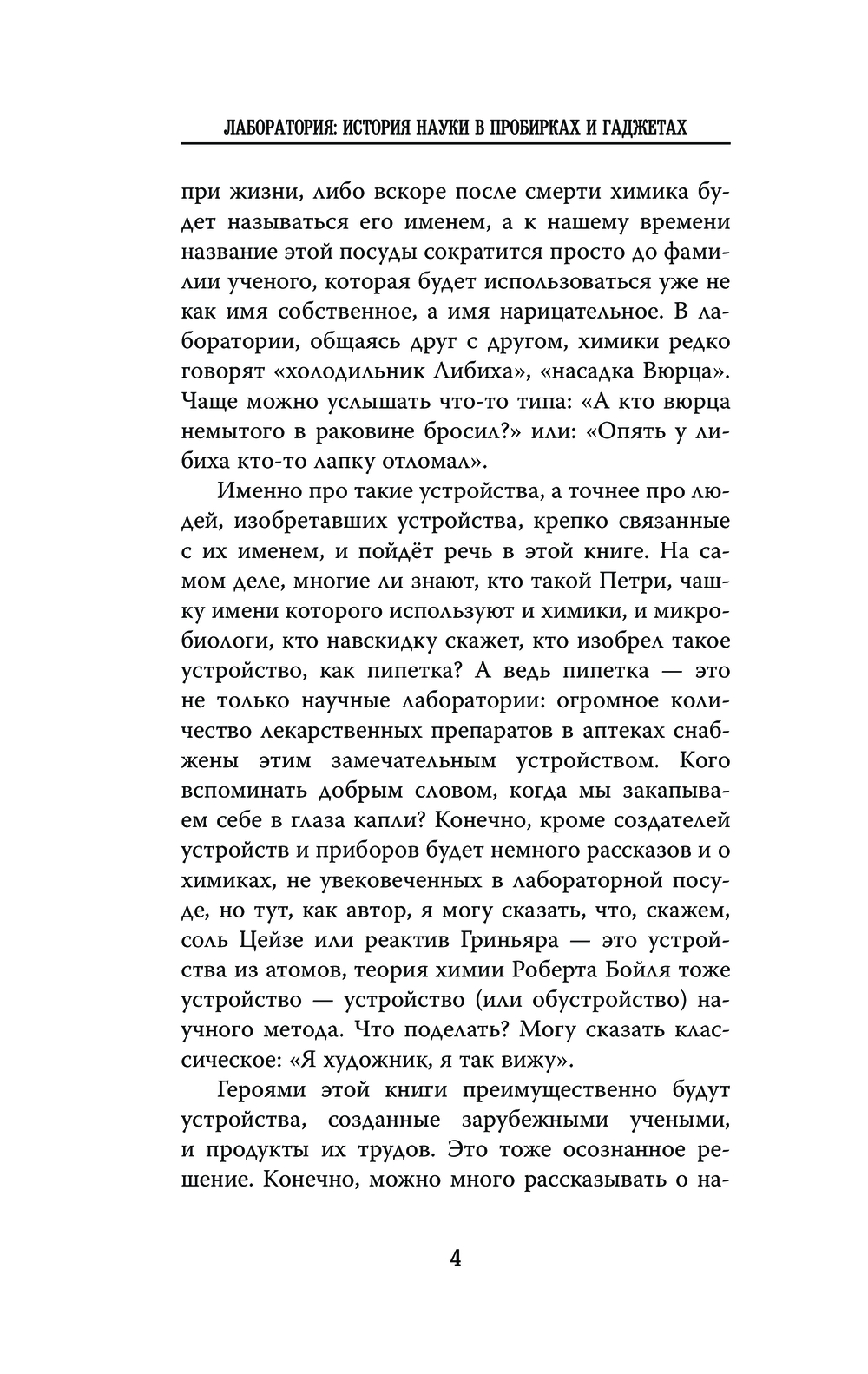 Через годы название этой посуды сократится просто до фамилии ученого – в лаборатории мы редко говорим "холодильник Либиха", "насадка Вюрца". Чаще можно услышать что-то типа: "А кто вюрца немытого в раковине бросил?" или: "Опять у либиха кто-то лапку отломал". Героями этой книги стали устройства, созданные ученымив помощь своим исследованиям.
