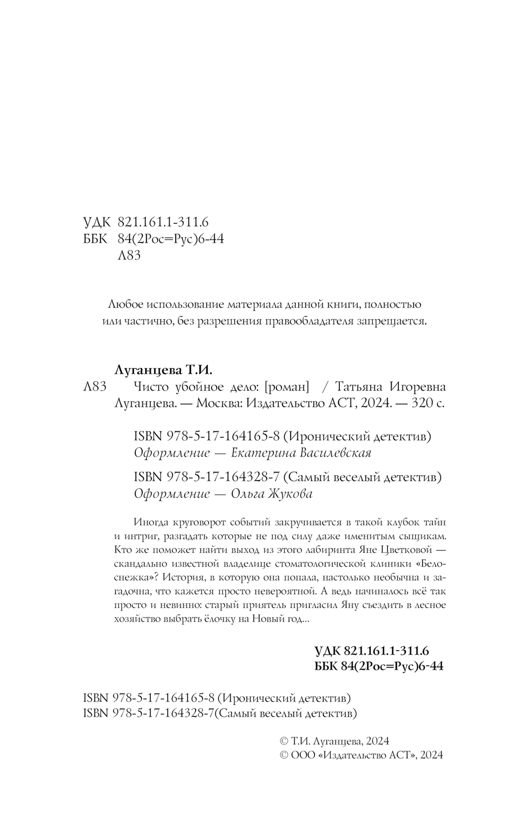 Иногда круговорот событий закручивается в такой клубок тайн и интриг, разгадать которые не под силу даже именитым сыщикам. Кто же поможет найти выход из этого лабиринта Яне Цветковой – скандально известной владелице стоматологической клиники "Белоснежка"? История, в которую она попала, настолько необычна и загадочна, что кажется просто невероятной. А ведь начиналось всё так просто и невинно: старый приятель пригласил Яну съездить в лесное хозяйство выбрать ёлочку на Новый год...