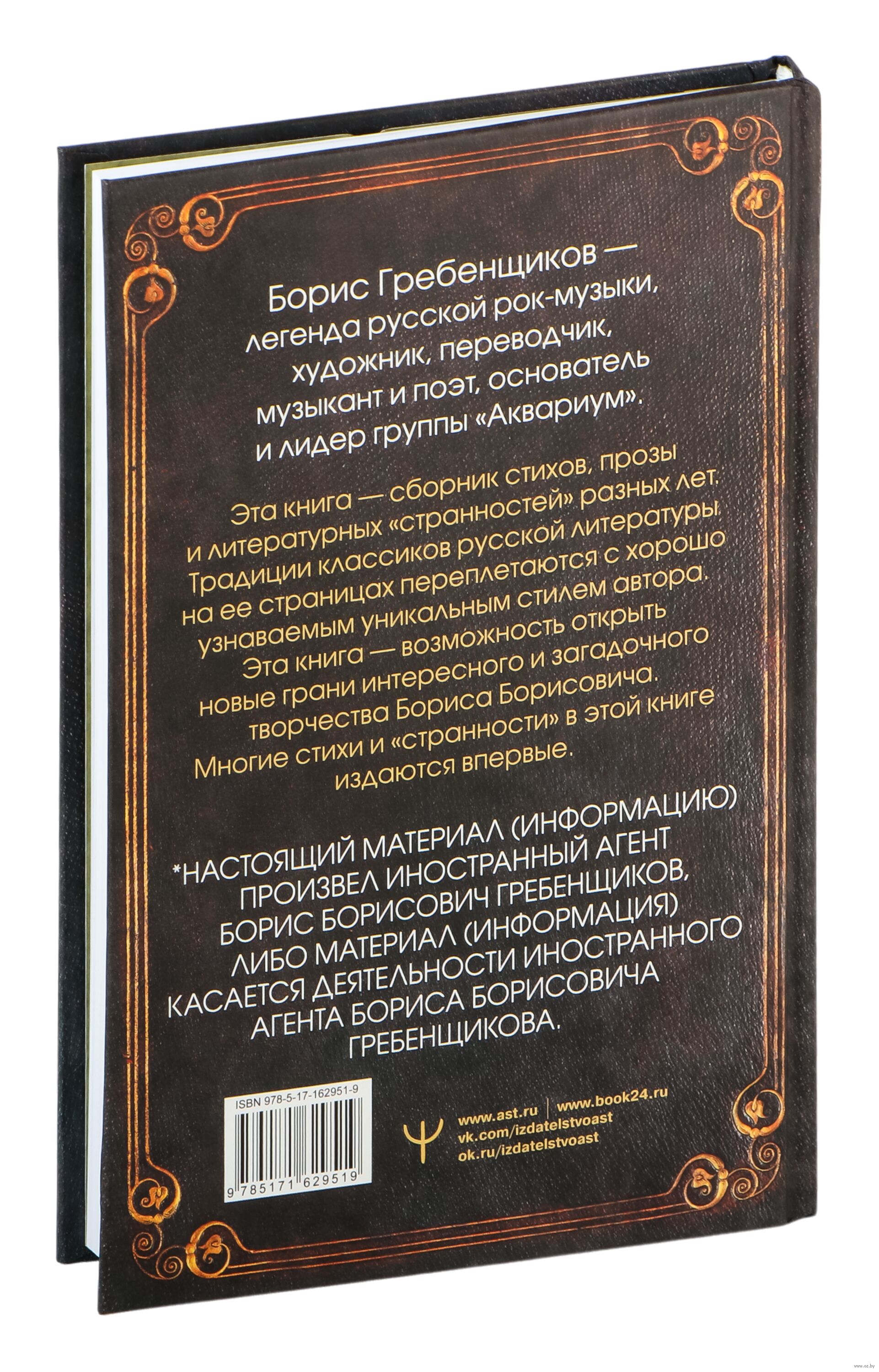 Эта книга – сборник стихов, прозы и литературных "странностей" разных лет от Бориса Гребенщикова. Традиции классиков русской литературы на ее страницах переплетаются с хорошо узнаваемым уникальным стилем автора. Эта книга – возможность открыть новые грани интересного и загадочного творчества Бориса Борисовича.