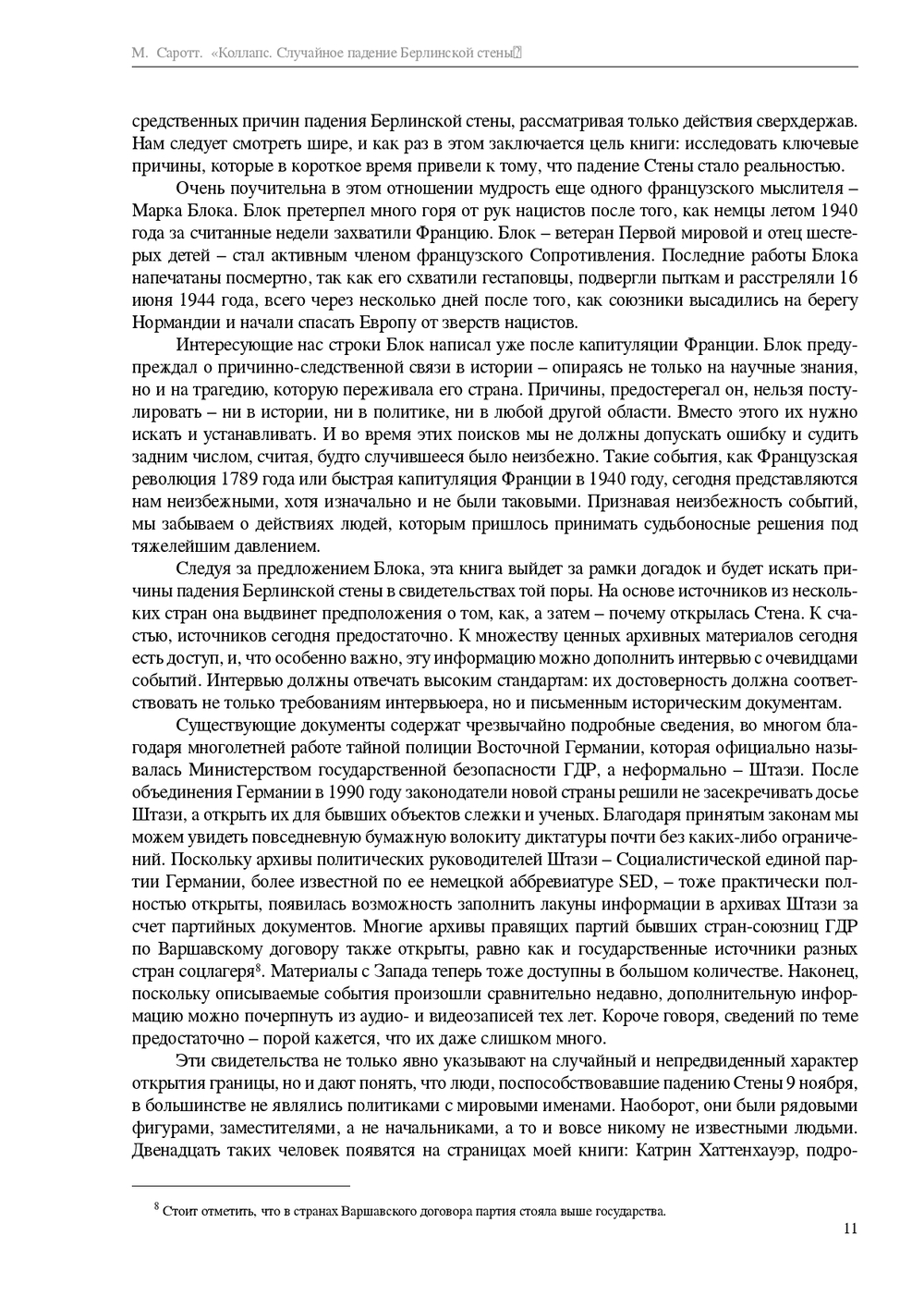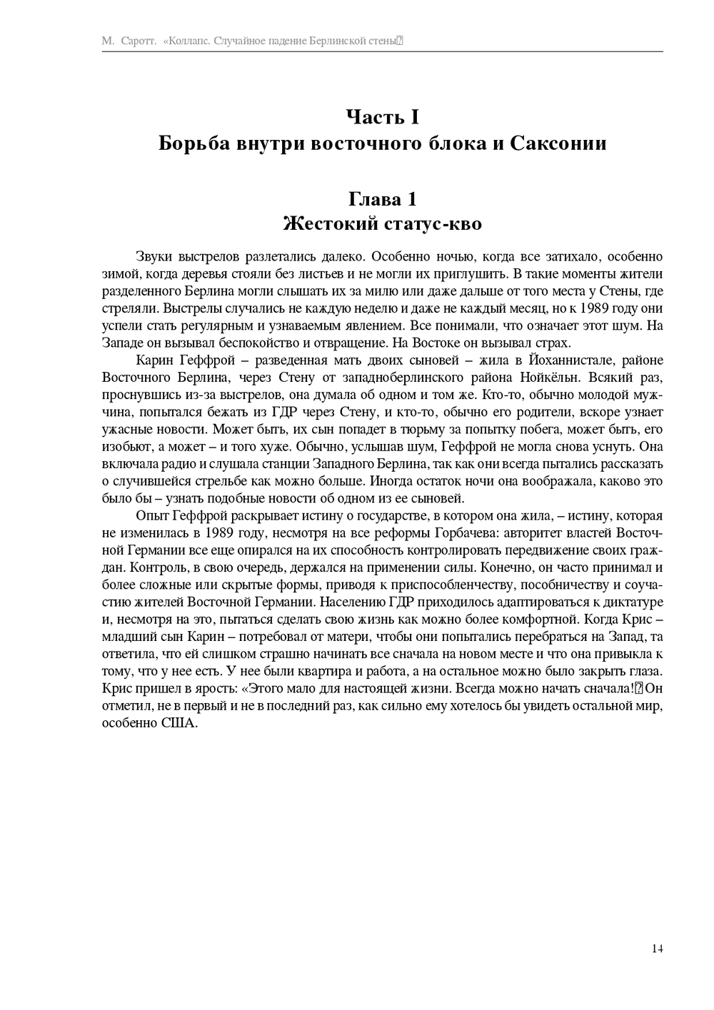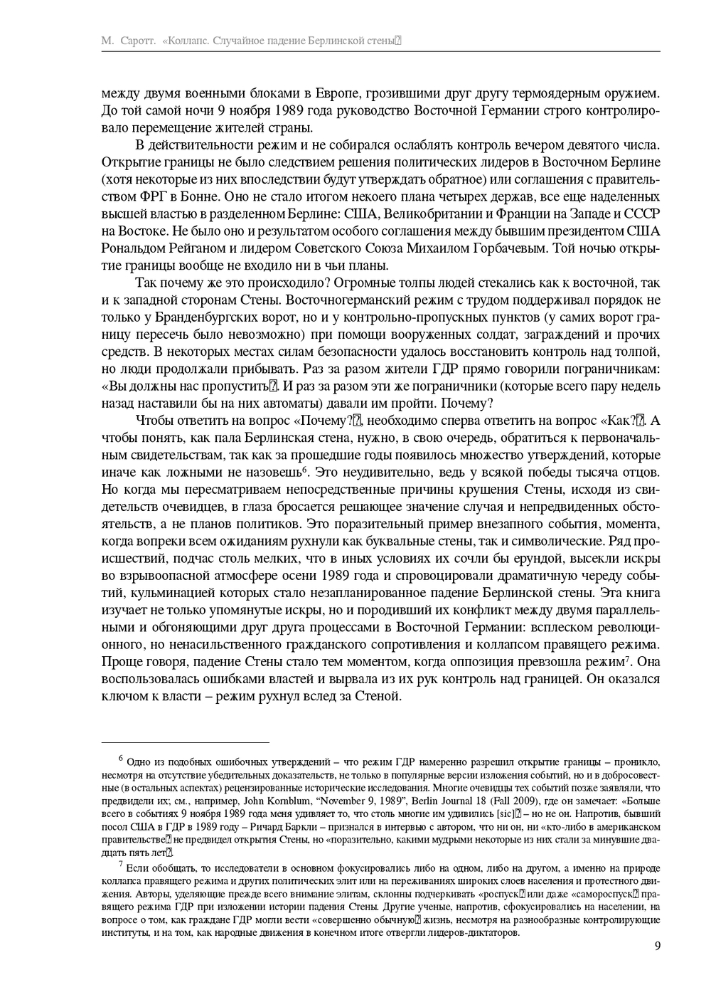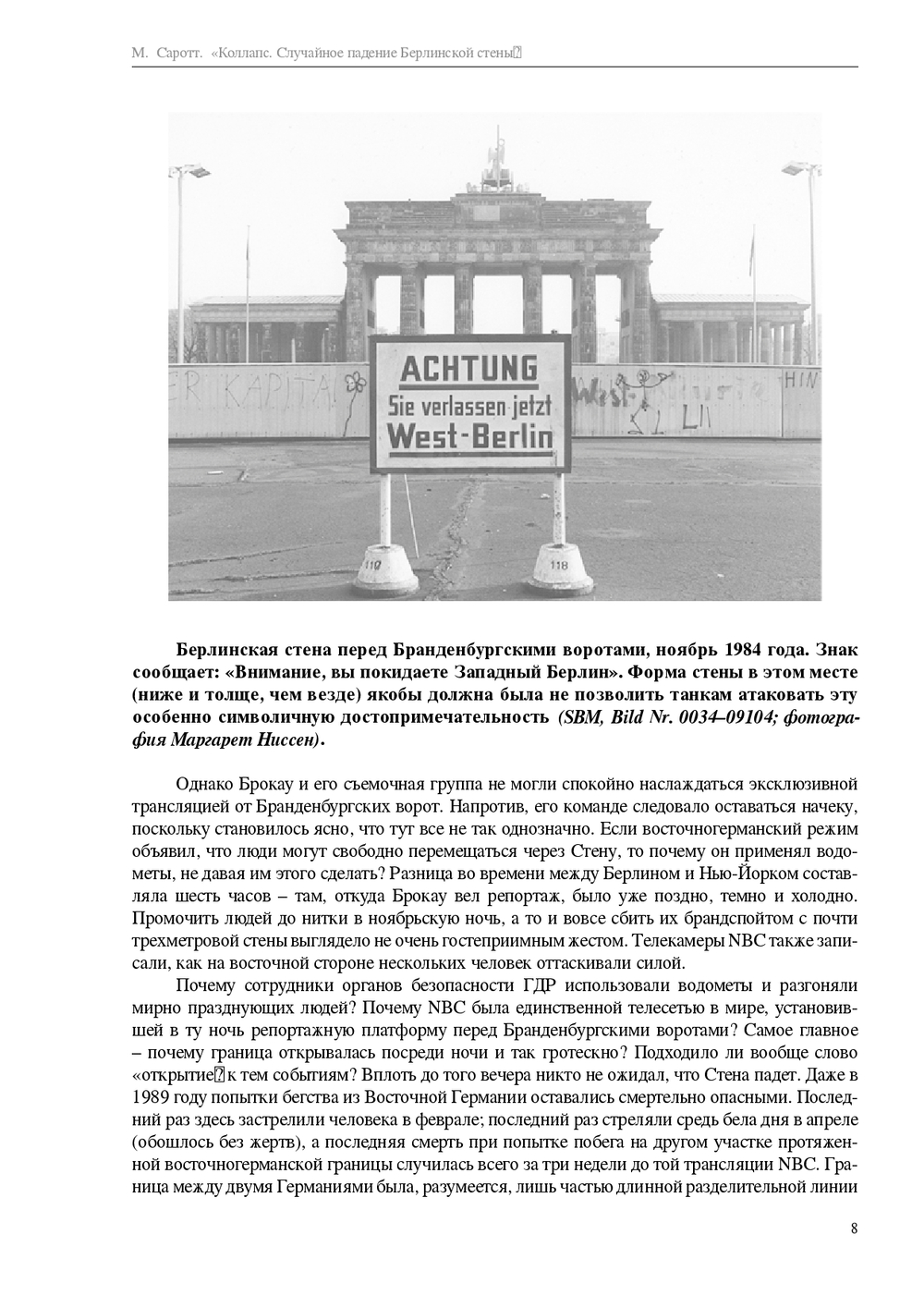 Мэри Элиз Саротт, профессор истории в Школе передовых международных исследований при Университете Джонса Хопкинса, практически поминутно восстанавливает хронику событий, предшествовавших падению Берлинской стены, и показывает, как из множества мелочей, часто случайных и непредвиденных, складывается Большая История.