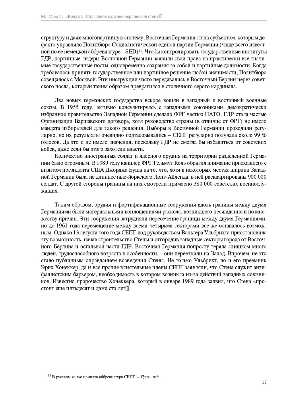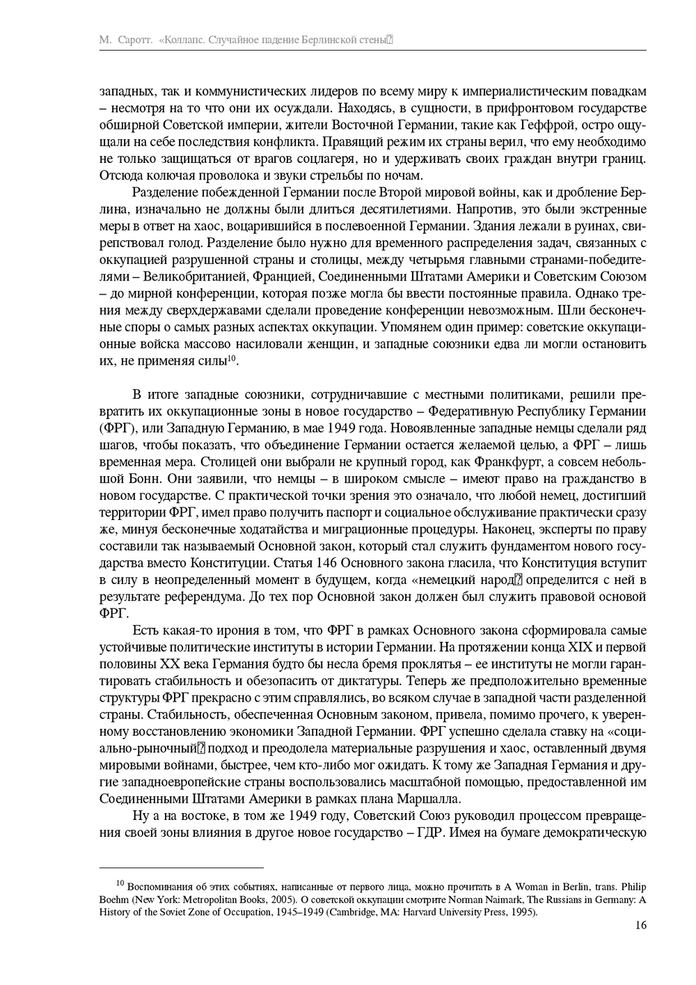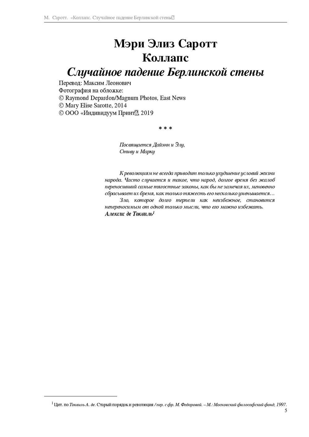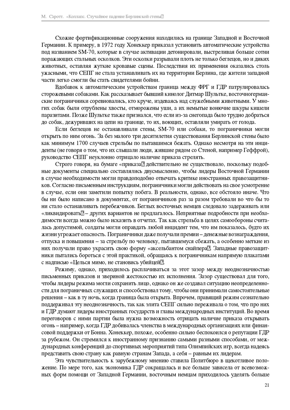 Мэри Элиз Саротт, профессор истории в Школе передовых международных исследований при Университете Джонса Хопкинса, практически поминутно восстанавливает хронику событий, предшествовавших падению Берлинской стены, и показывает, как из множества мелочей, часто случайных и непредвиденных, складывается Большая История.