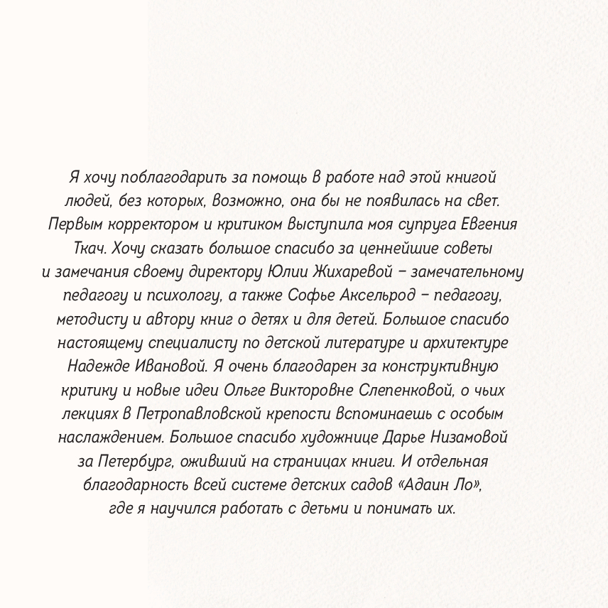 Книга будет одинаково полезна как детям, так и родителям, педагогам и экскурсоводам. Она станет настоящим помощником в подготовке к занятию по истории Петербурга или просто новым другом, с которым будет весело и интересно всей семье.