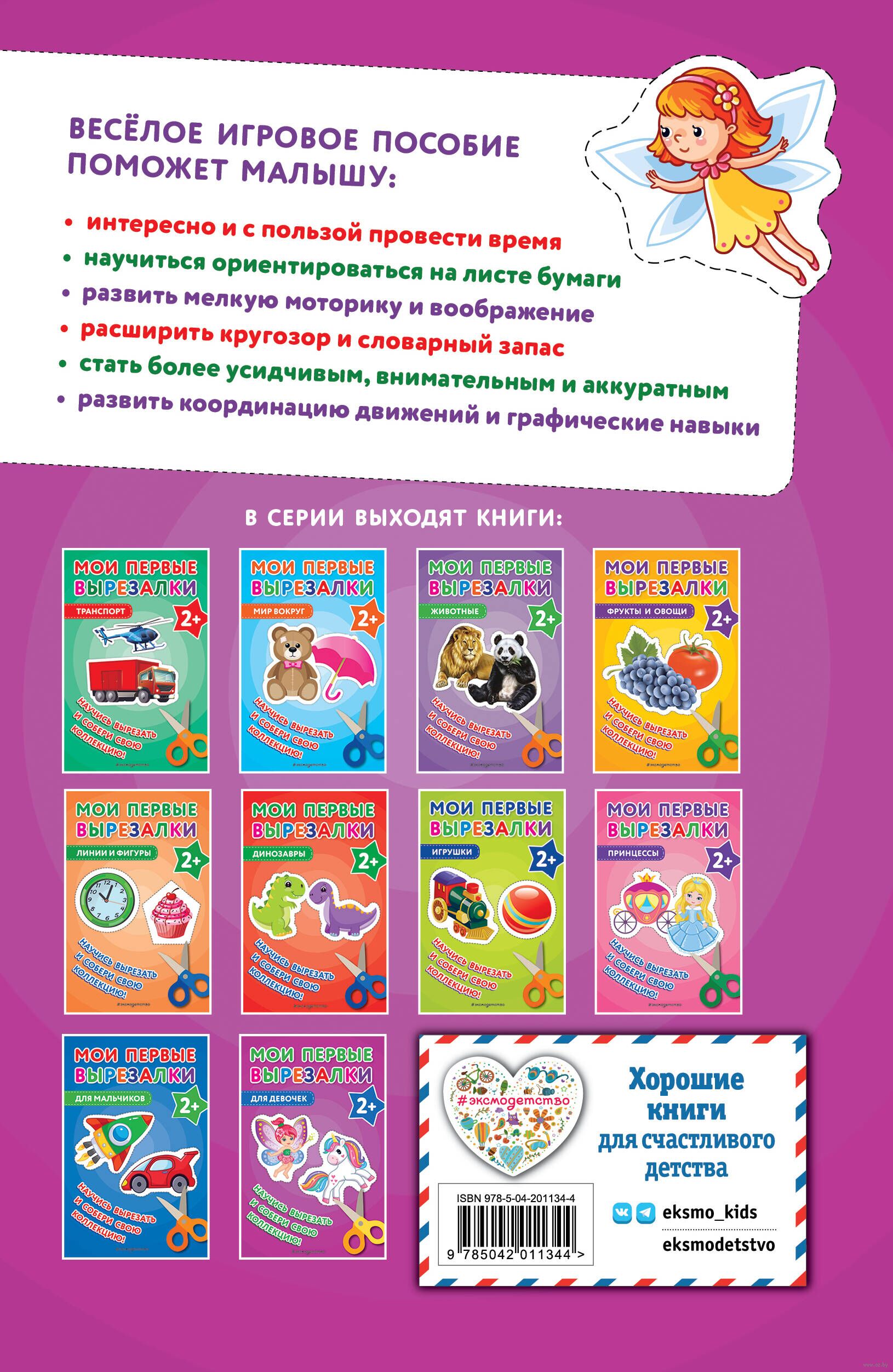 Увлекательная красочная книга-вырезалка для девочек поможет расширить кругозор ребенка, развить мелкую моторику, внимание, воображение, речь, увеличить словарный запас. Начинать заниматься можно с 2-х лет, постепенно приучая ребенка правильно держать ножницы и ориентироваться на листе бумаги.