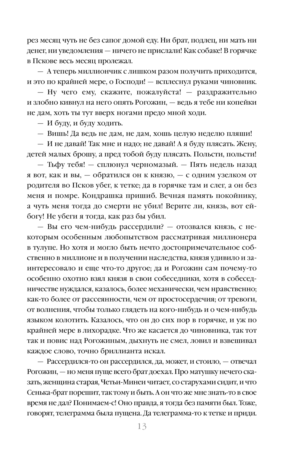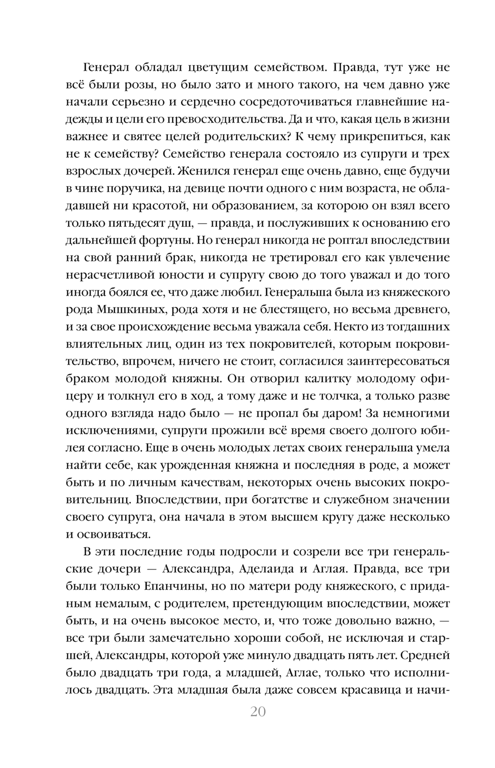 "Идиот" – возможно, самый мрачный и одновременно чувственный роман Федора Достоевского. Князь Лев Николаевич Мышкин возвращается в Россию после пребывания в швейцарском санатории и оказывается втянутым в сложный любовный треугольник. Его искренние порывы и чувства сталкиваются с жестоким миром ревности, самолюбия и пресыщенности окружающих. Но настоящий нерв роману придают две центральные героини: красивая и надменная Настасья Филипповна Барашкова, которая маскирует страдания своей души под издевками над окружающими, и отчаянно стремящаяся вырваться из своего скучного окружения Аглая Епанчина.