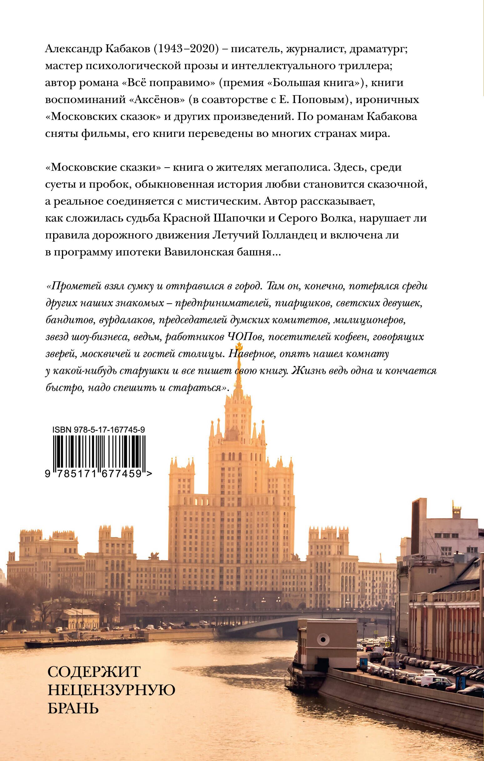"Московские сказки" – книга о жителях мегаполиса. Здесь, среди суеты и пробок, обыкновенная история любви становится сказочной, а реальное соединяется с мистическим. Автор рассказывает, как сложилась судьба Красной Шапочки и Серого Волка, нарушает ли правила дорожного движения Летучий Голландец и включена ли в программу ипотеки Вавилонская башня...