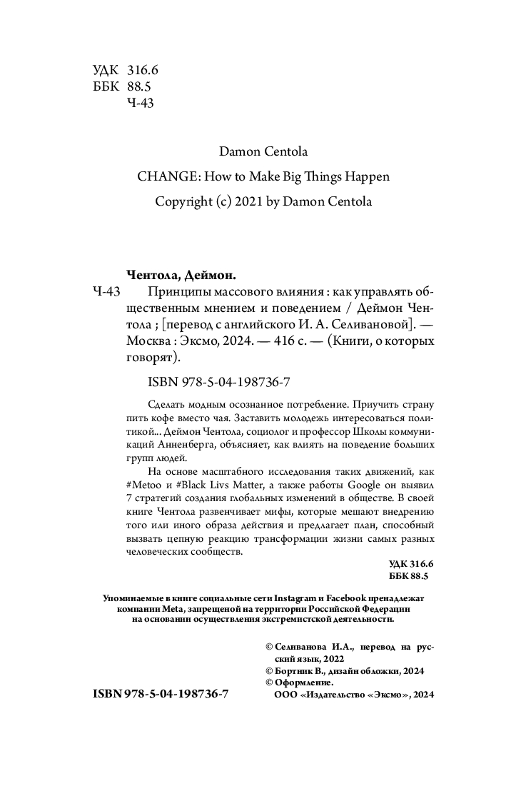 | Название в оригинале | CHANGE: The Surprising Science of How New Ideas and Behaviors Take Off and Take Hold (HOW CHANGE HAPPENS) |