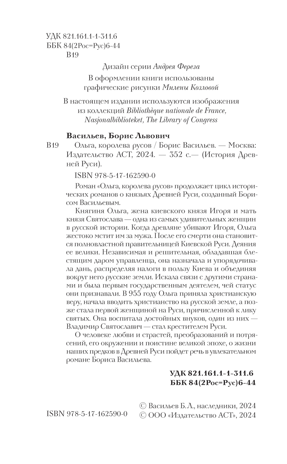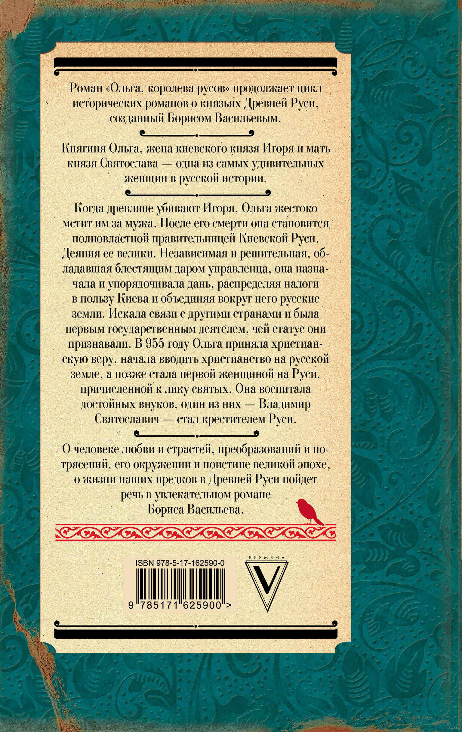 Роман "Ольга, королева русов" продолжает цикл исторических романов о князьях Древней Руси, созданный Борисом Васильевым.