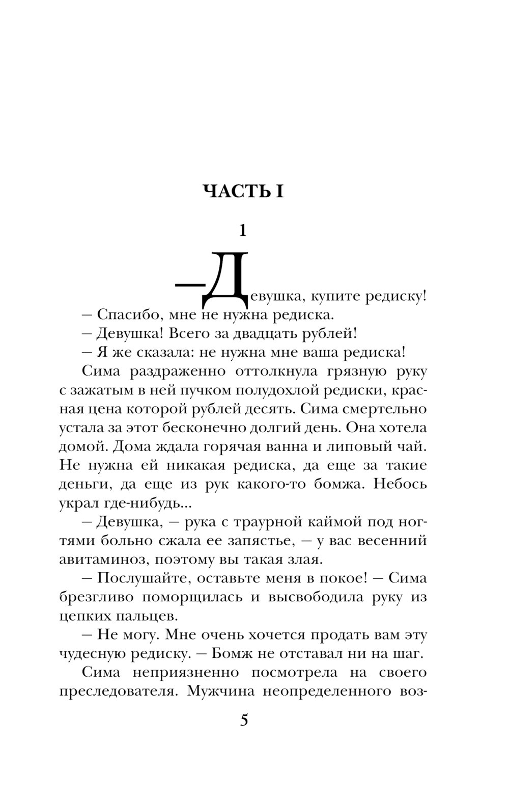 "Девушка, купите редиску!" – окликнул Симу бомж. Он оказался настойчив, и она предпочла достать из кошелька последние деньги, лишь бы избавиться от неприятного типа. Могла ли Сима подумать, что перед ней – миллионер, участвующий в странной игре "Полное погружение". У богатых свои причуды, но порой их игры имеют самые непредсказуемые последствия.
