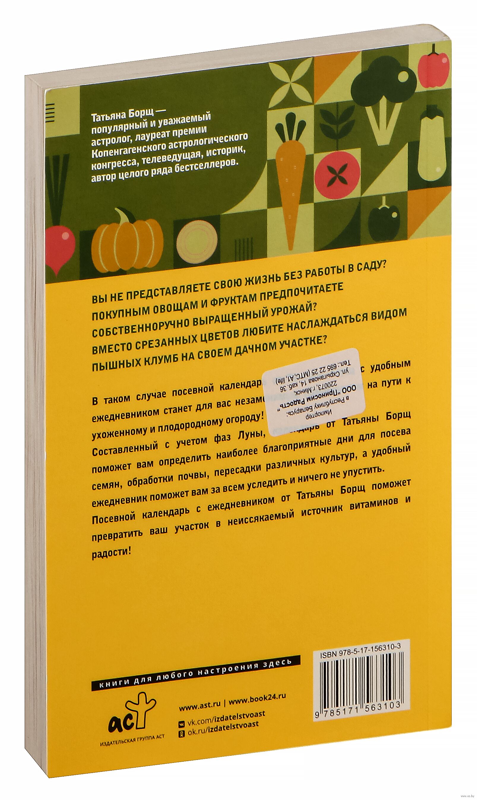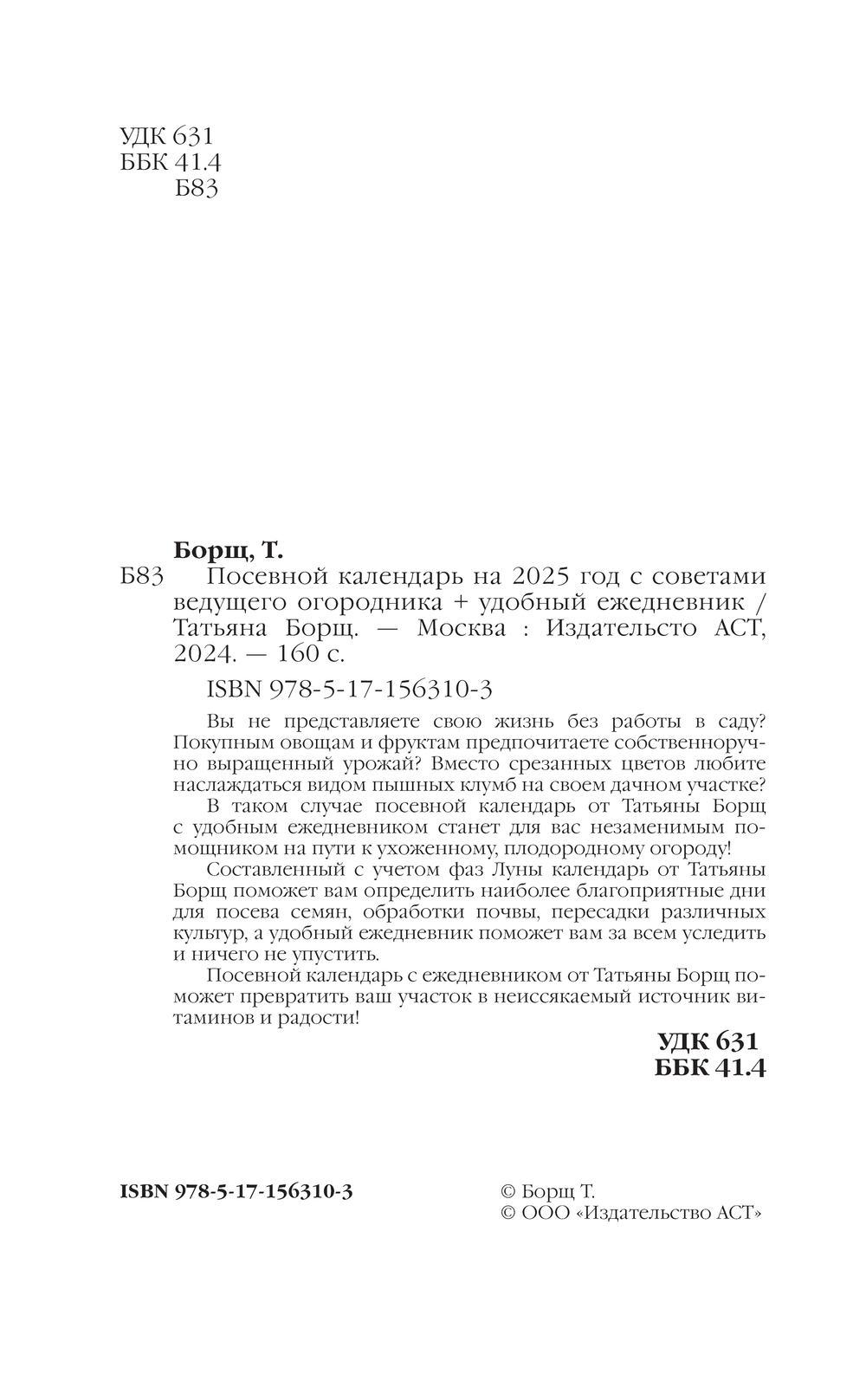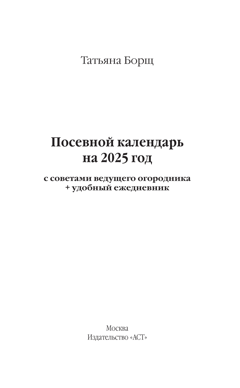 В таком случае посевной календарь от Татьяны Борщ с удобным ежедневником станет для вас незаменимым помощником на пути к ухоженному и плодородному огороду!