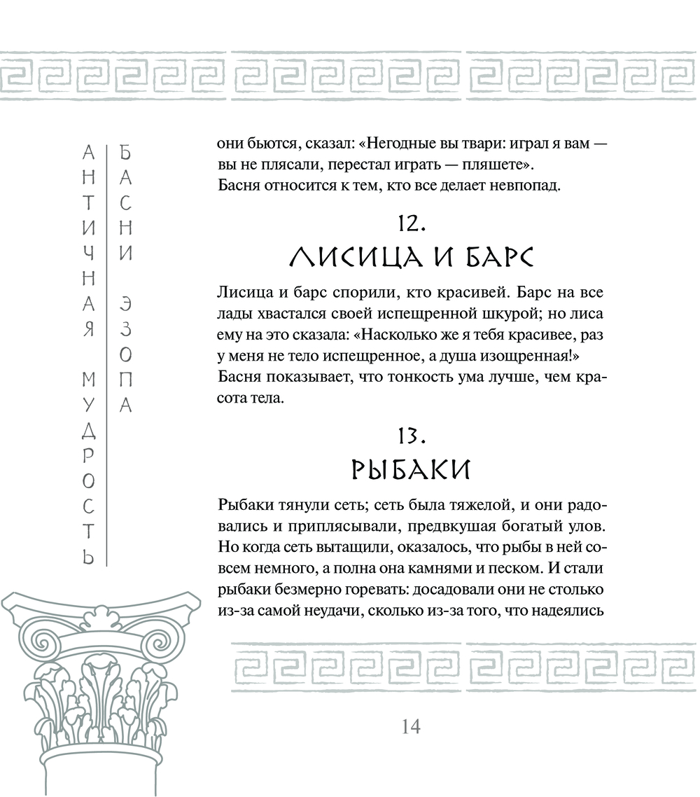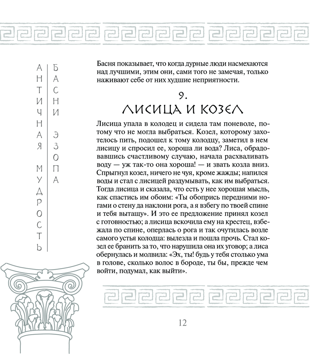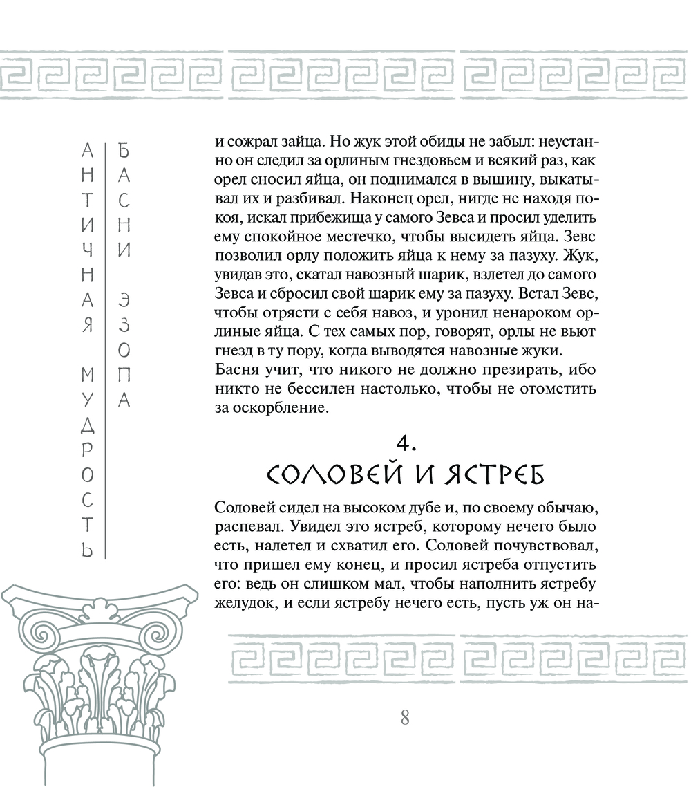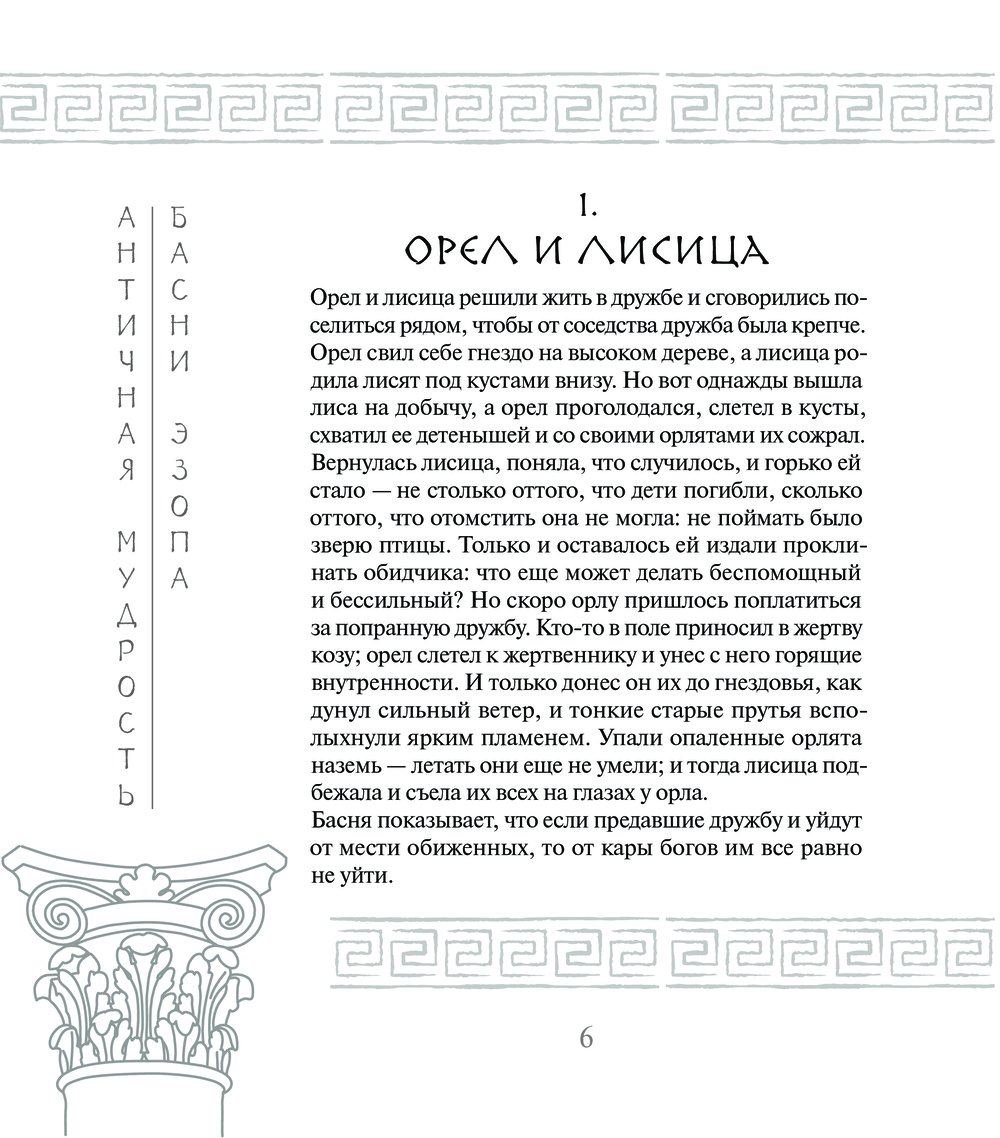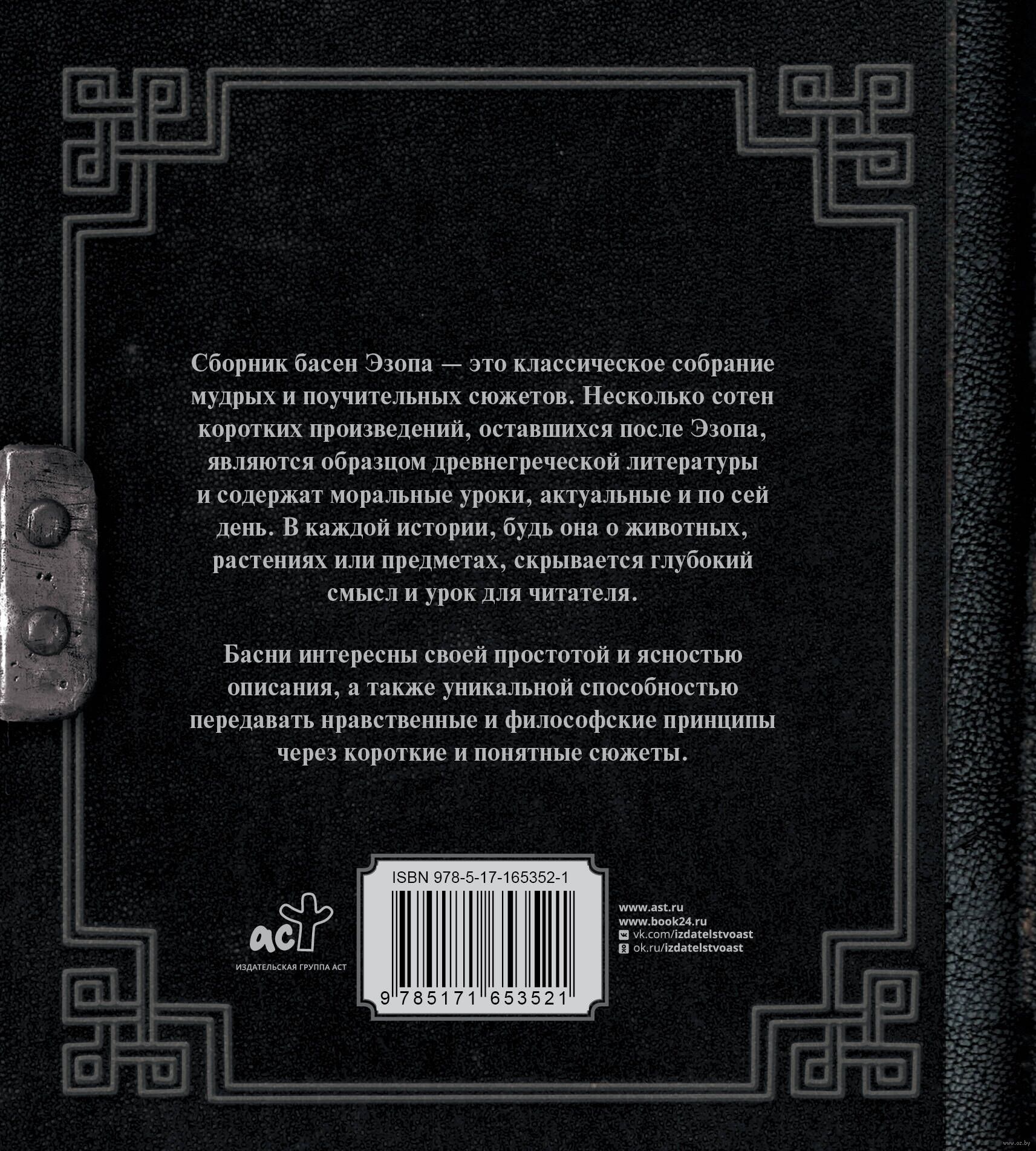 Сборник басен Эзопа – это классическое собрание мудрых и поучительных сюжетов. Несколько сотен коротких произведений, оставшихся после Эзопа, являются образцом древнегреческой литературы и содержат моральные уроки, актуальные и по сей день. В каждой истории, будь она о животных, растениях или предметах, скрывается глубокий смысл и урок для читателя. Басни интересны своей простотой и ясностью описания, а также уникальной способностью передавать нравственные и философские принципы через короткие и понятные сюжеты.