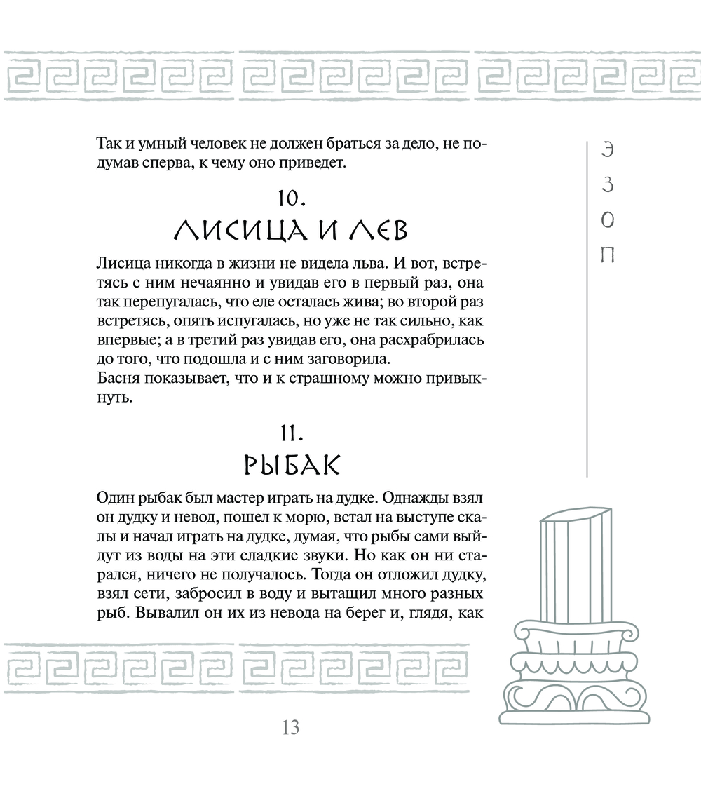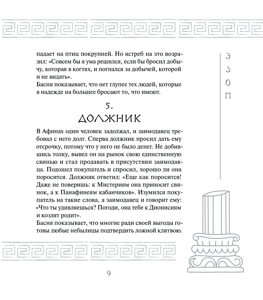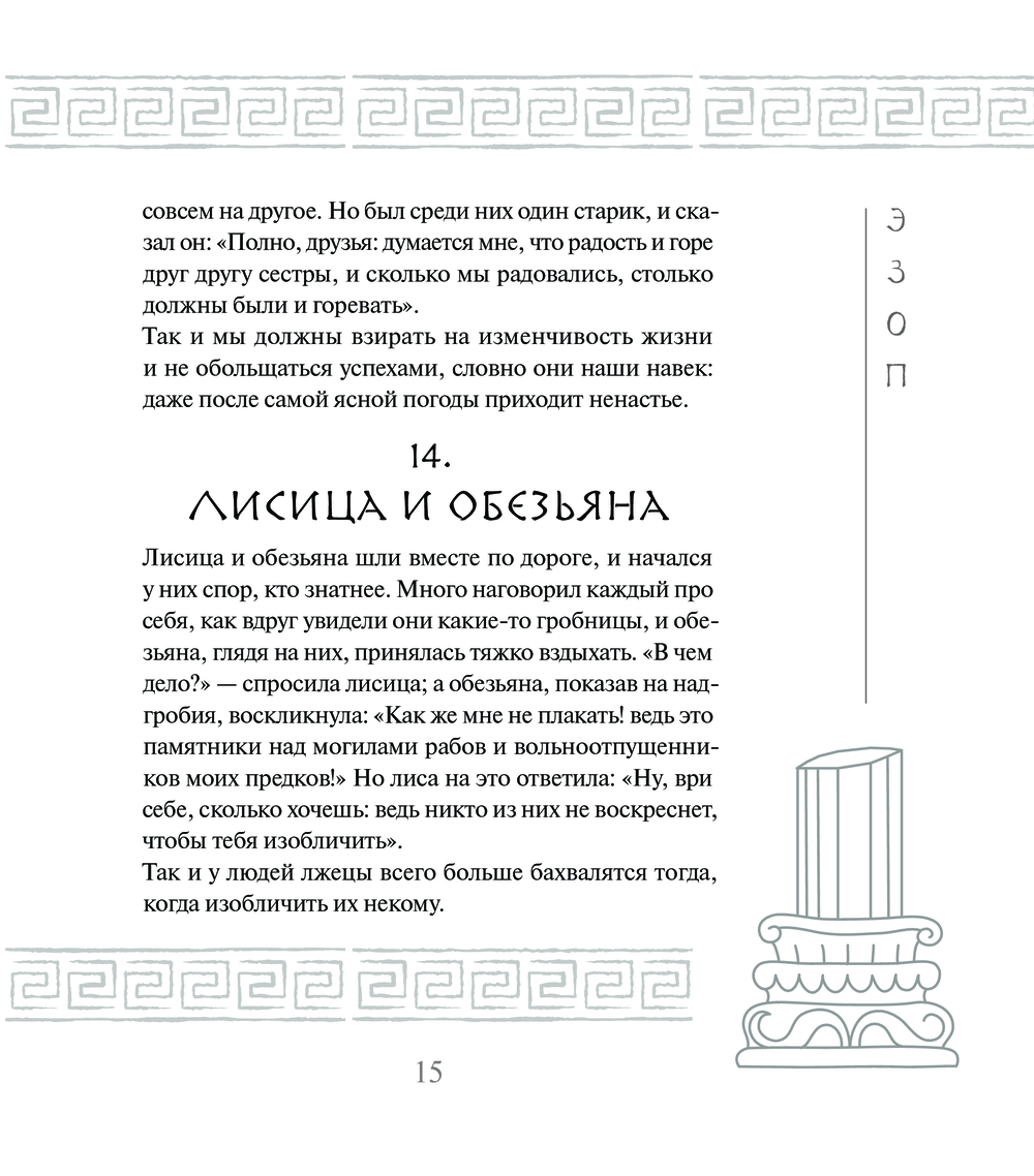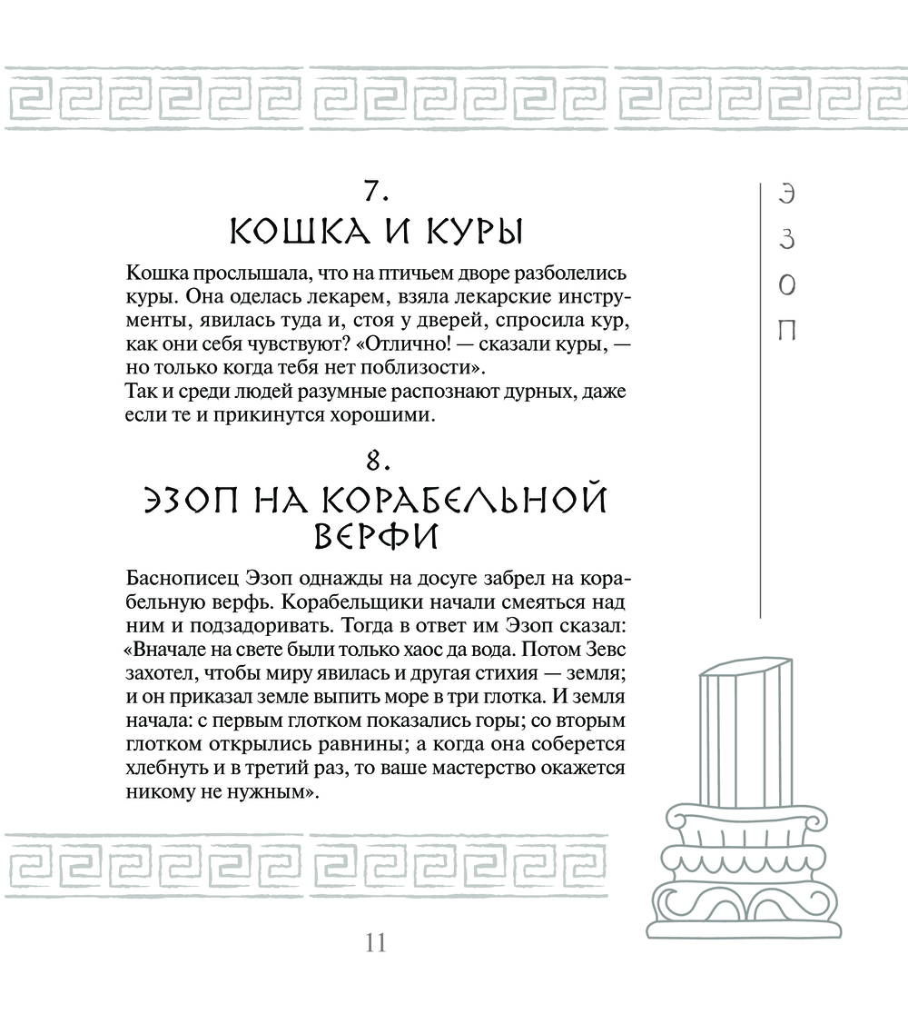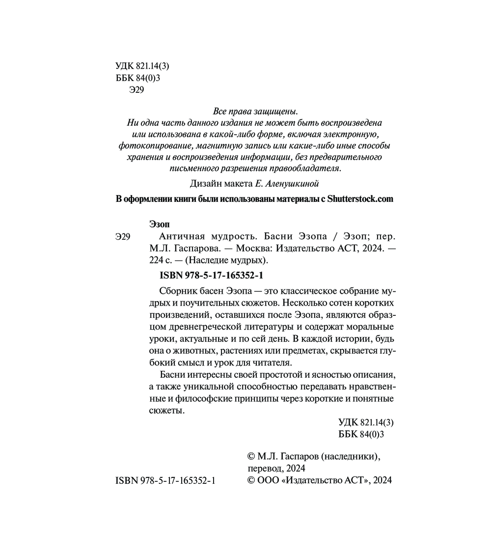 Сборник басен Эзопа – это классическое собрание мудрых и поучительных сюжетов. Несколько сотен коротких произведений, оставшихся после Эзопа, являются образцом древнегреческой литературы и содержат моральные уроки, актуальные и по сей день. В каждой истории, будь она о животных, растениях или предметах, скрывается глубокий смысл и урок для читателя. Басни интересны своей простотой и ясностью описания, а также уникальной способностью передавать нравственные и философские принципы через короткие и понятные сюжеты.