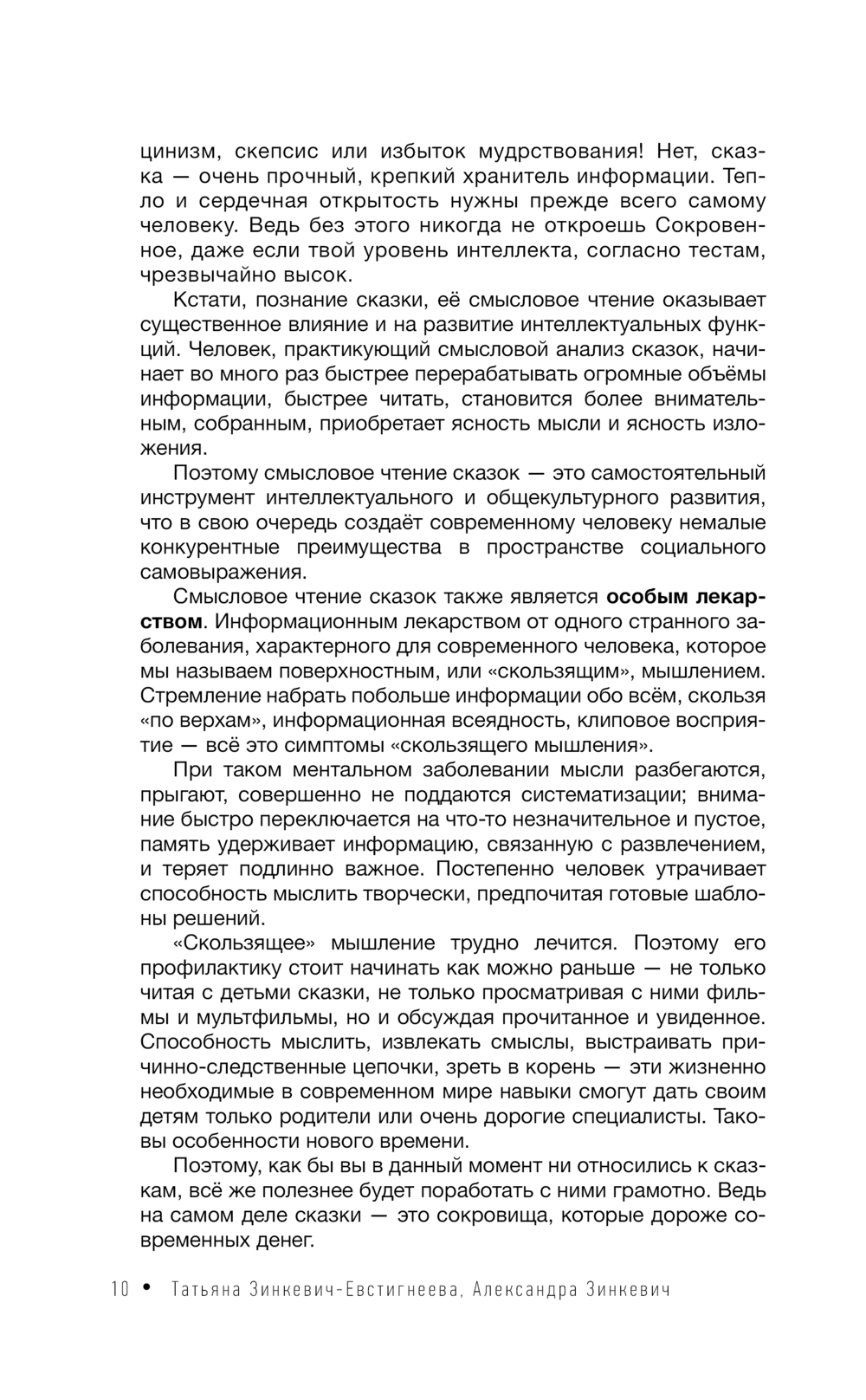 Авторы погружают нас в смысловое чтение сказок, ведь сказка даёт сознанию ту ясность, которой ему не хватает в рутине повседневности, а еще даёт надежду – нет ничего непоправимого, всё можно исправить, это лишь вопрос времени и верных усилий.